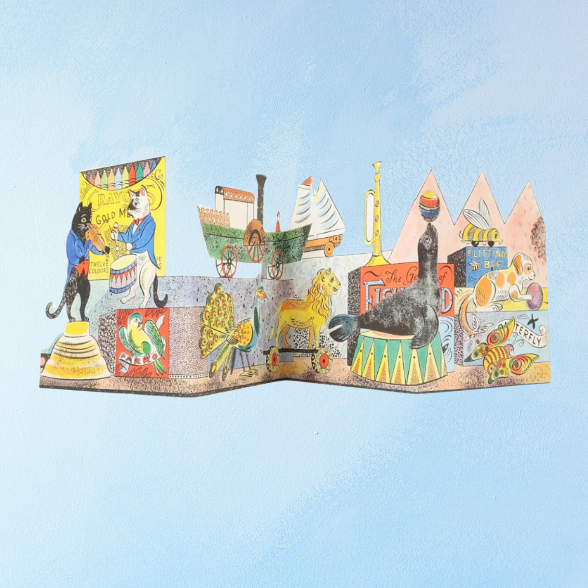 This greeting card is so much more than a message, it's a presentable piece of 3D art! Unfold it to reveal a magical scene where tin toys come to life.