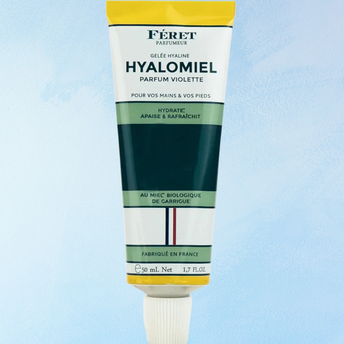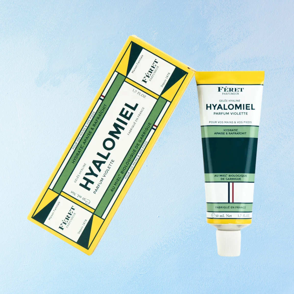 Hyalomiel is a centuries old formula with a unique jelly like texture that provides softness and suppleness, without the greasy feel. This honey hyaline jelly acts as a transparent protective film and is infused with a timeless violet scent. Perfect for gender neutral skin care and sensitive skin.