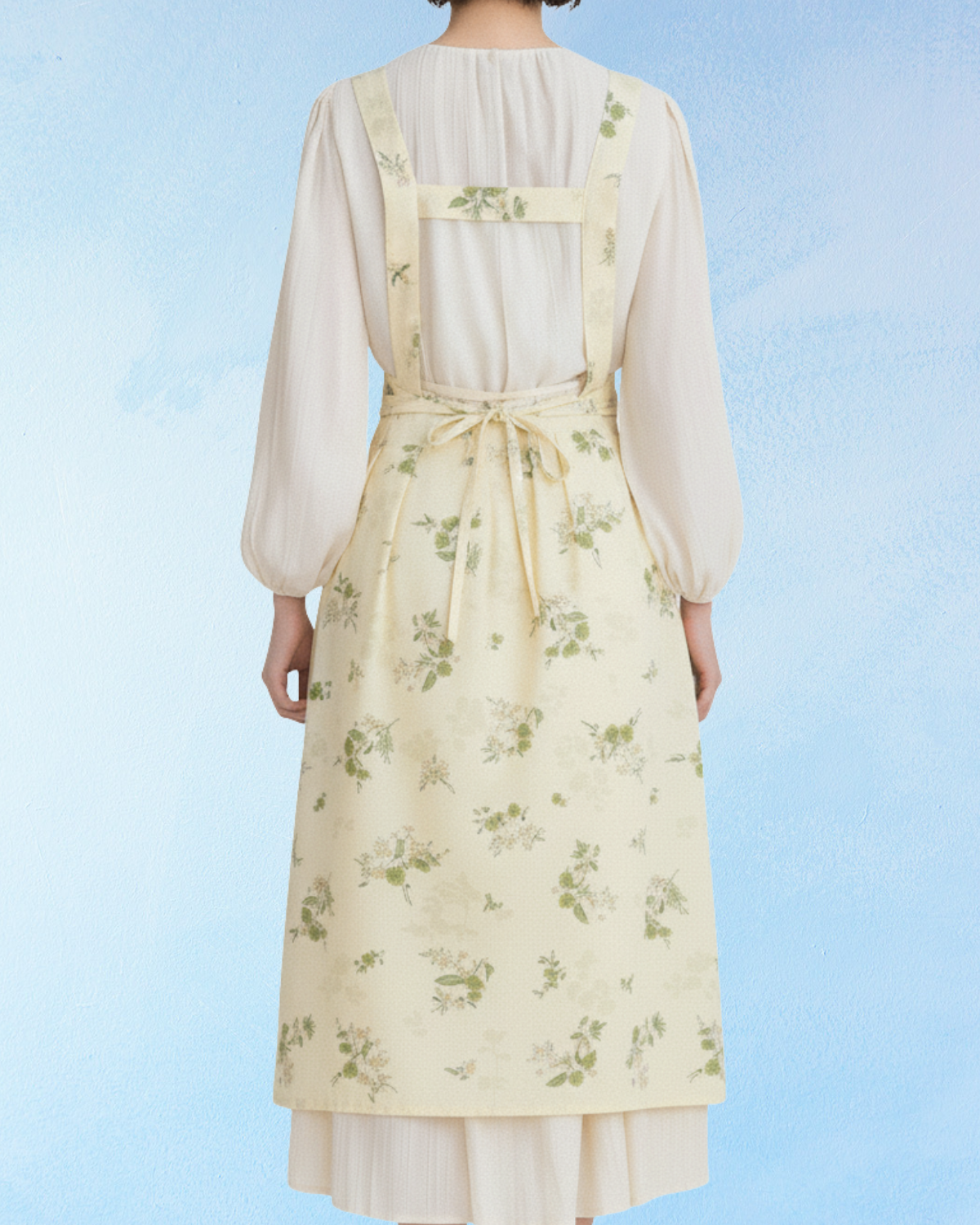 apron - floral double tie - pale yellow