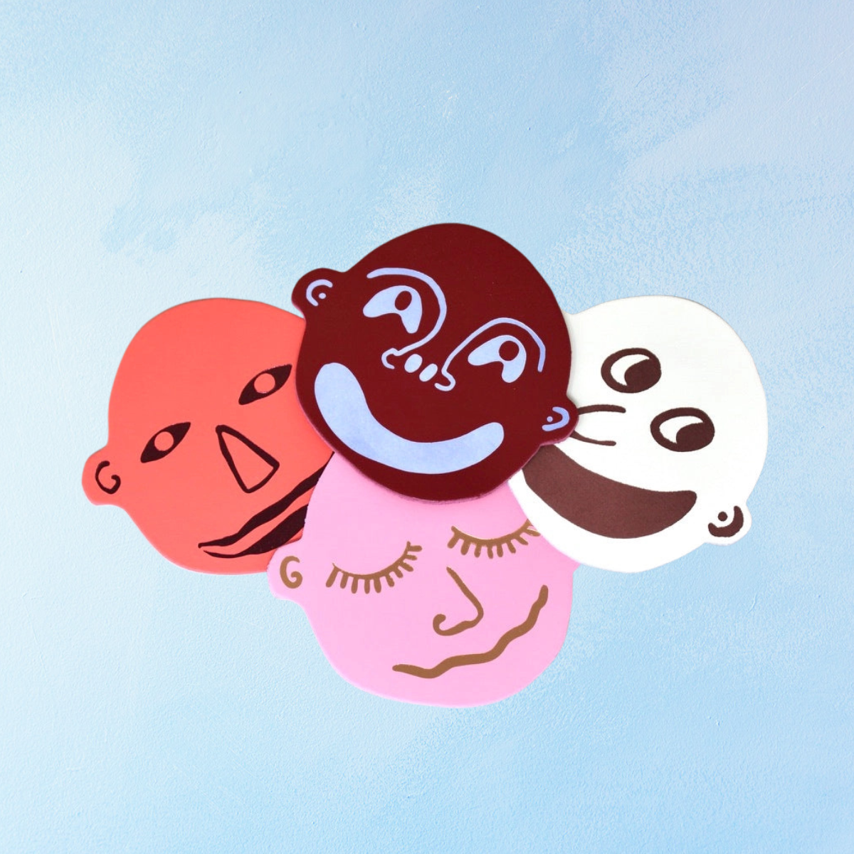 A set of four leather face coasters, each with a cheeky pair of ears.