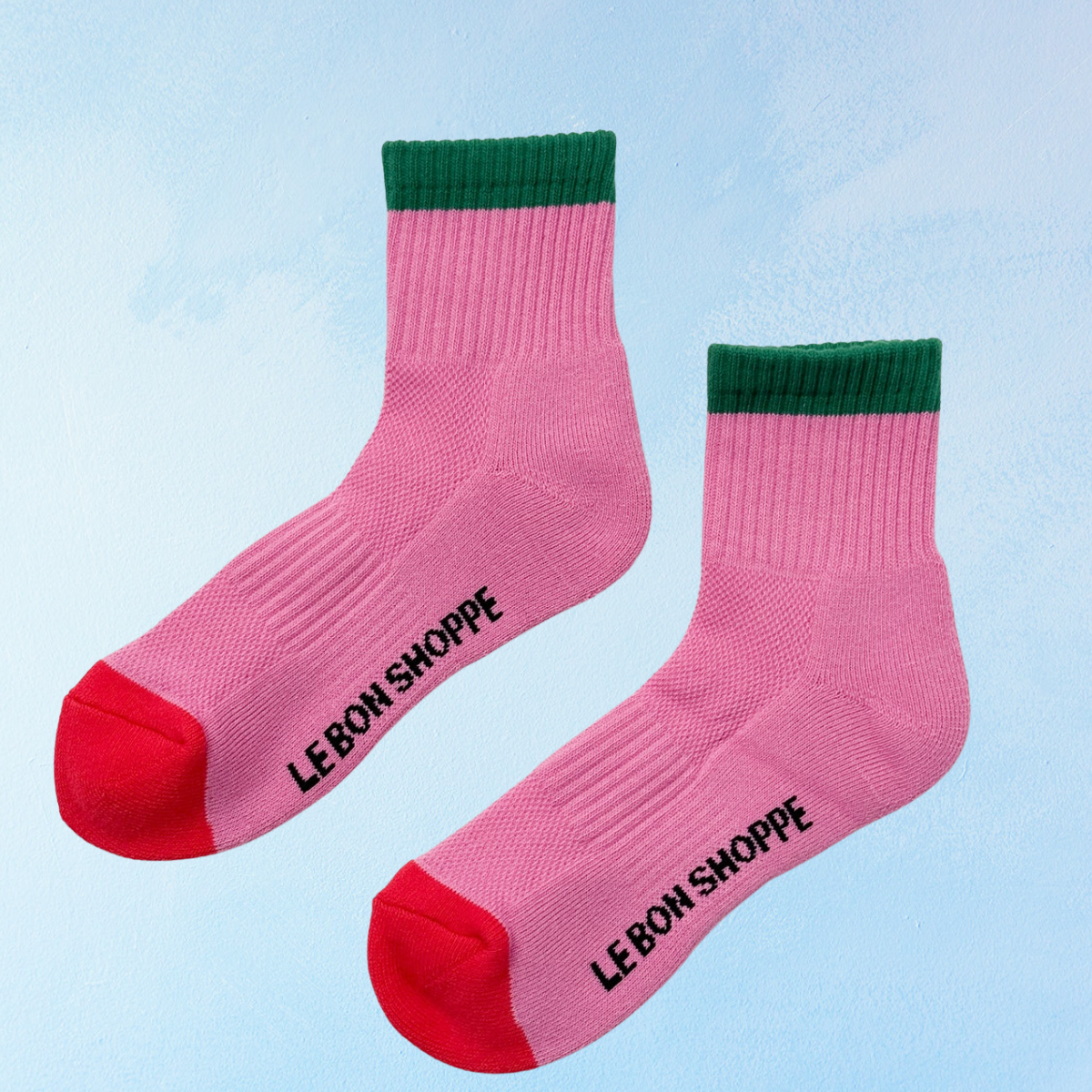 The cool, quarter-crew version of the signature Boyfriend Socks. The Girlfriend Socks by Le Bon Shoppe featuring fun, colour-blocking along the top edge of the ankle and contrasting toes for a youthful flair. Show off the cheeky design by pairing these socks with open-toe sandals or matching them with your favourite sneakers for a timeless look.