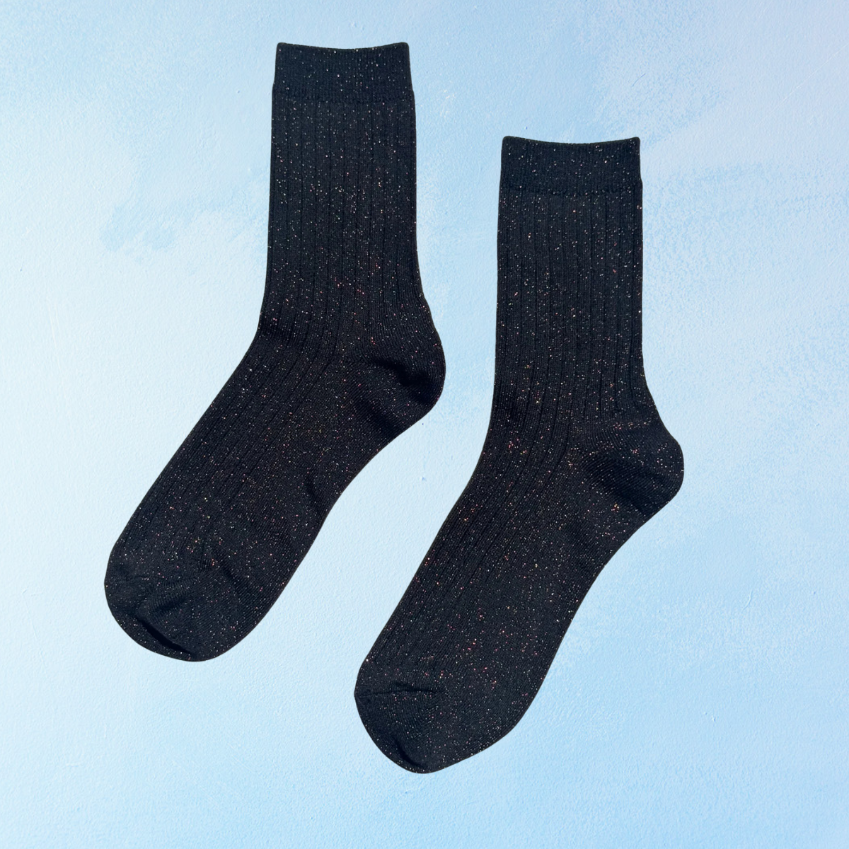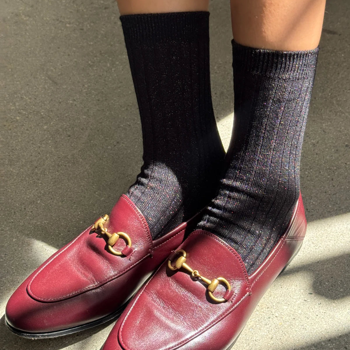 A little sparkle goes a long way with Her Lurex Socks. The glittery version of our OG Her Socks adds a festive element to any outfit. Crafted from a cotton-modal blend, they feature sparkly flecks woven throughout, allowing them to glimmer in the light. Classic ribbed details, quarter-crew length, and shimmery elements make them perfect for days when you need some extra pizazz!