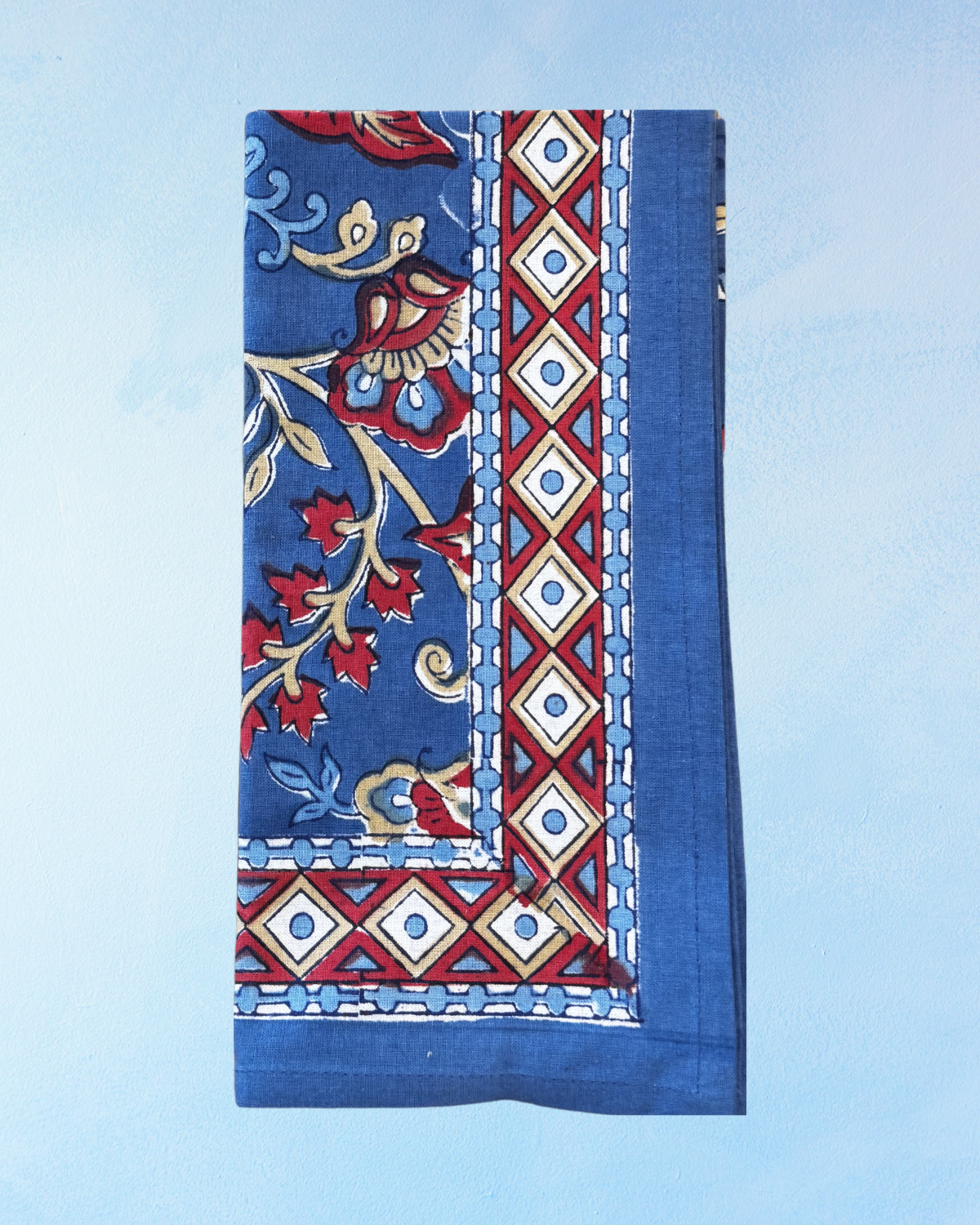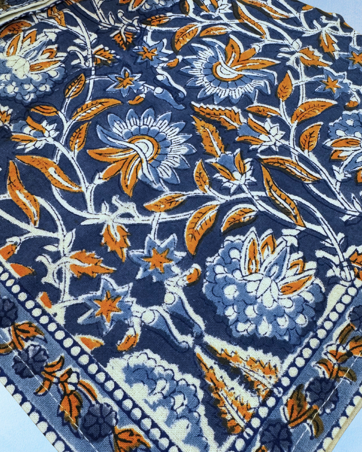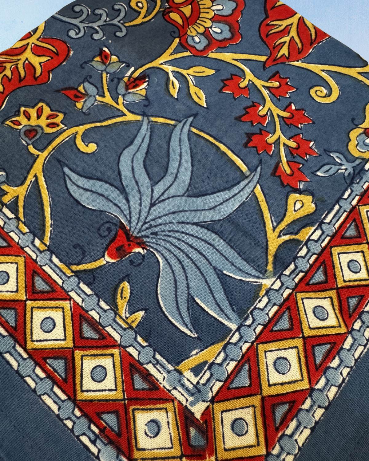 square tablecloth - kalamkari indigo fleur