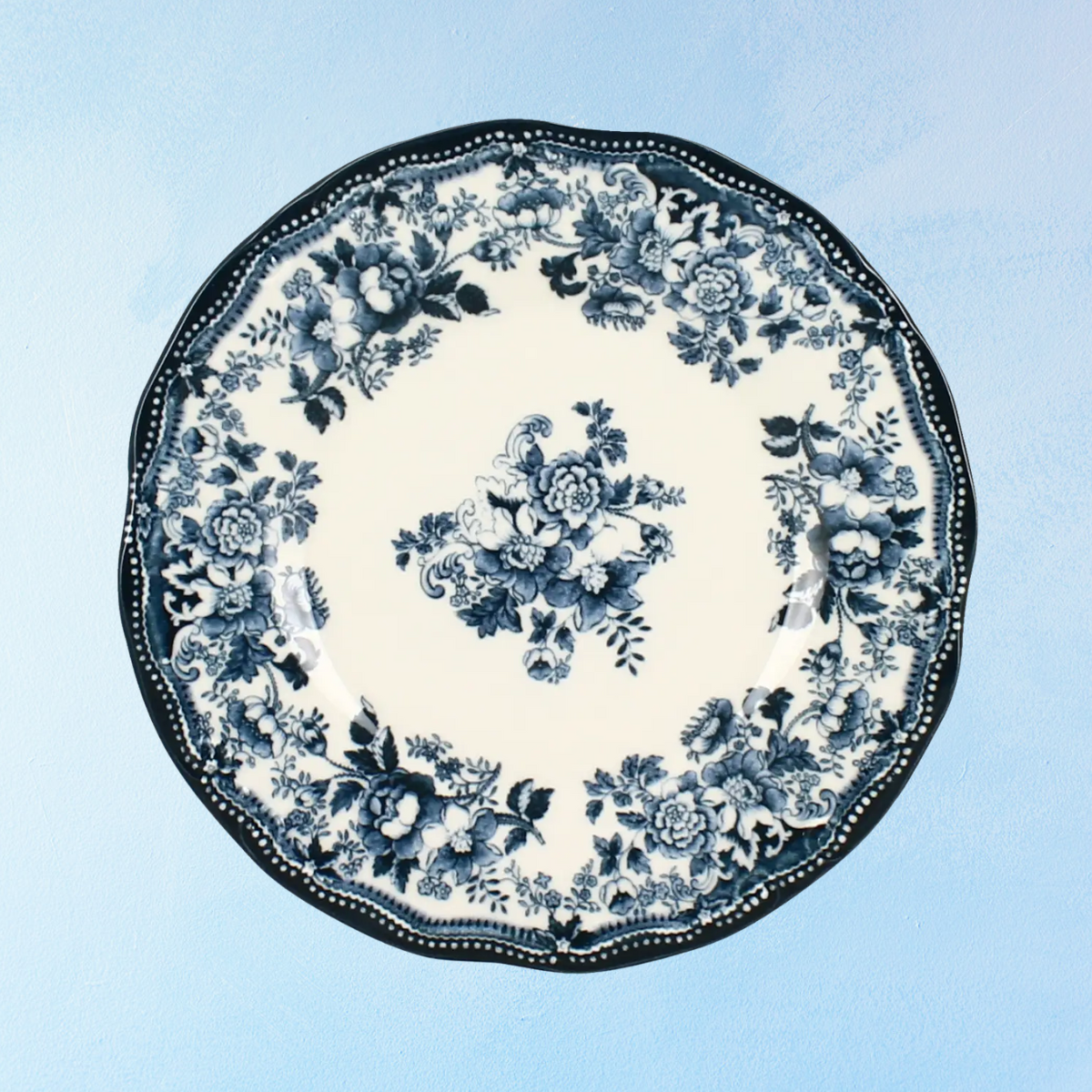 Gorgeous dessert plate made in timeless blue porcelain, they're delicately adorned with floral patterns, adding a romantic and warm touch to every meal!