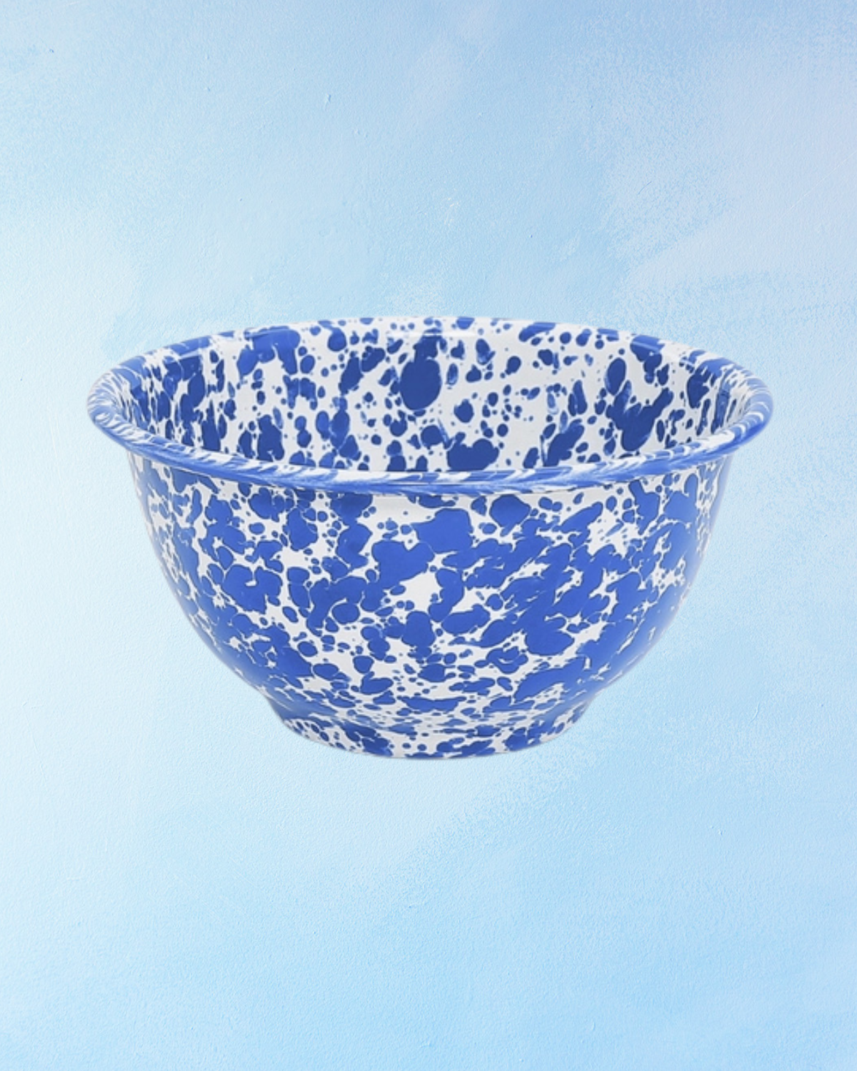 footed bowl - splatter enamelware - blue and white