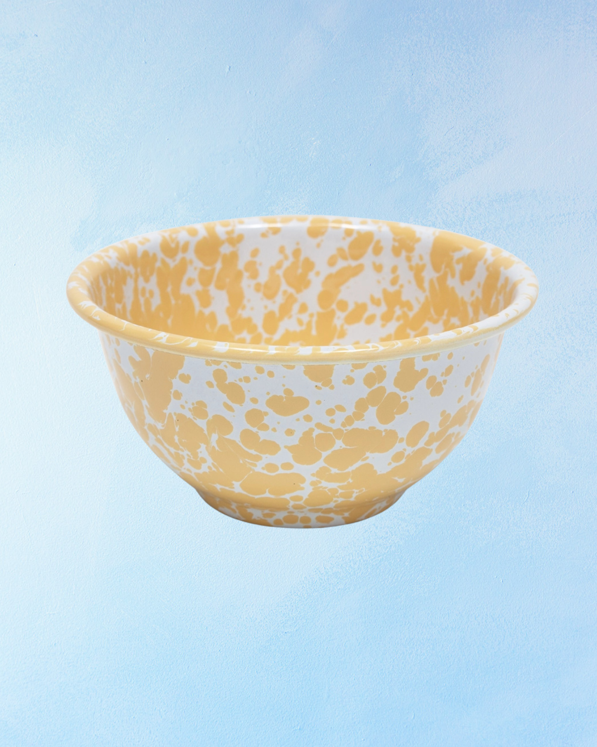 footed bowl - splatter enamelware - yellow and white
