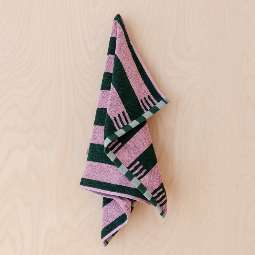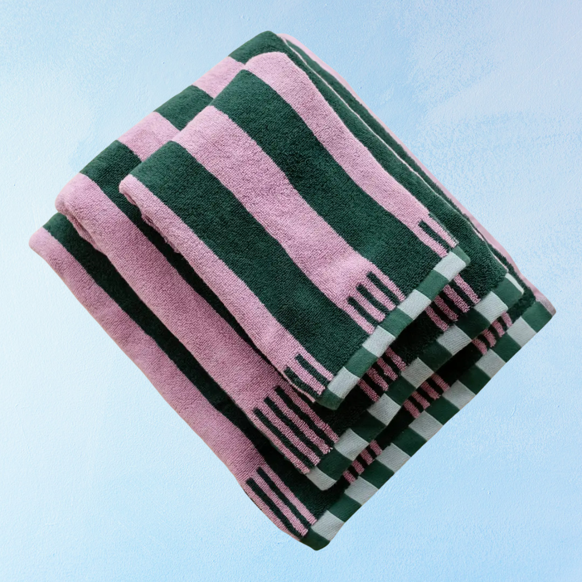 Gorgeous rose and green striped hand towels are the perfect finishing touch to any bathroom!