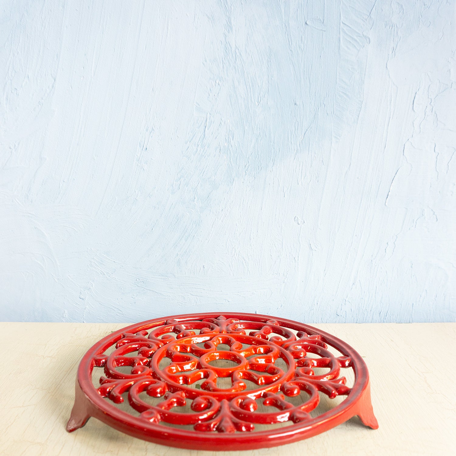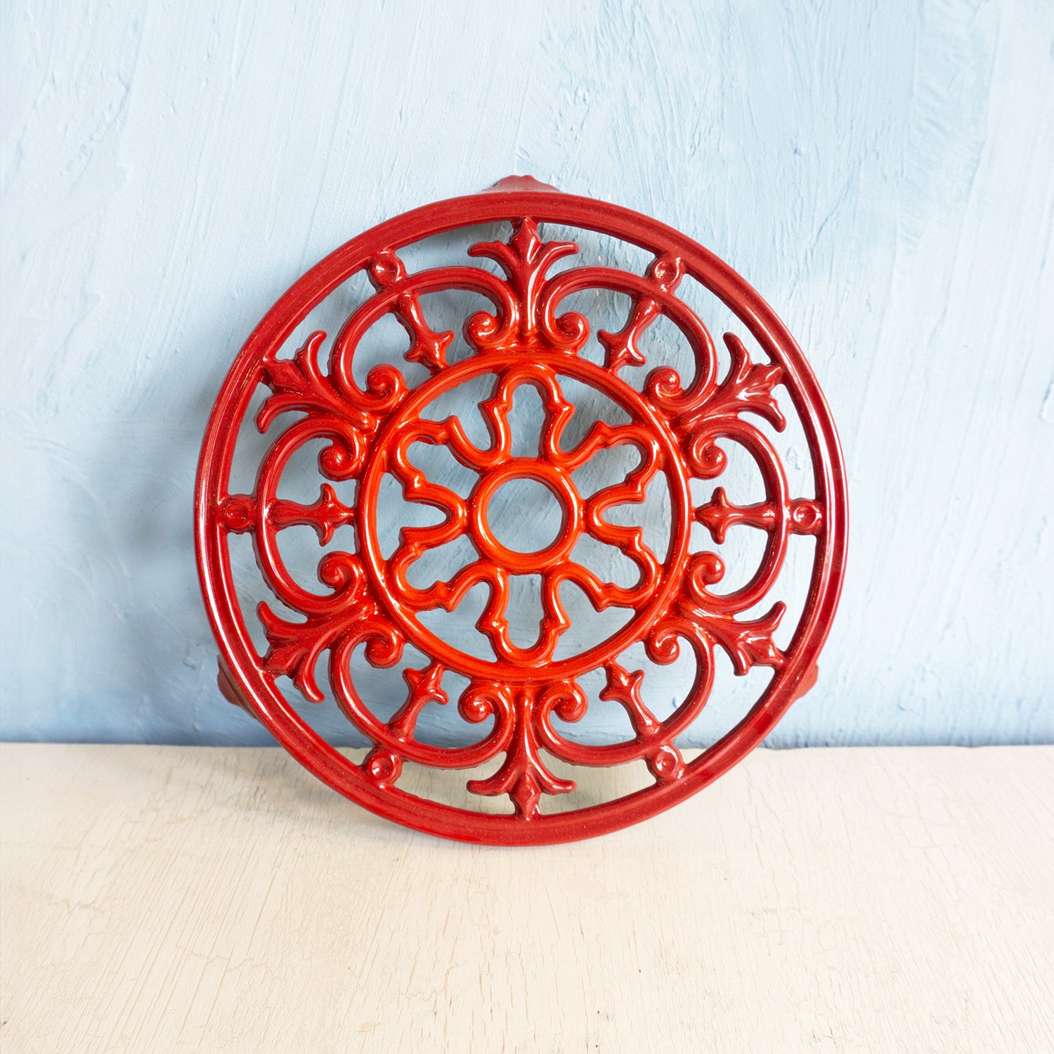 Made in France, this beautiful Fleur De Lys 9" trivet makes a lovely addition to your dining table or kitchen. Protect any counter top or table cloth from hot dishes with this sturdy, double-enameled cast iron trivet with a glossy red finish.