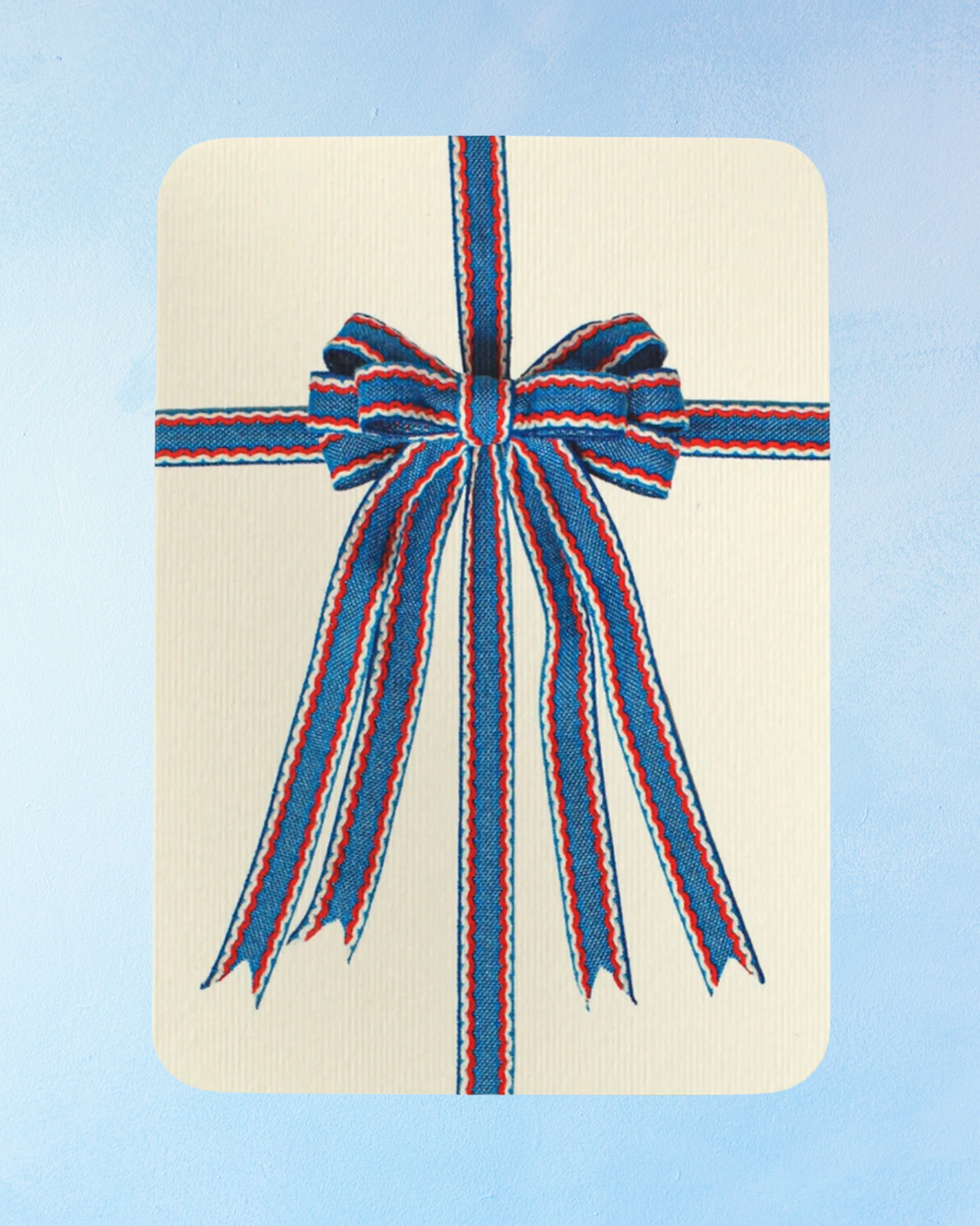 greeting card - blue, red, and white bow