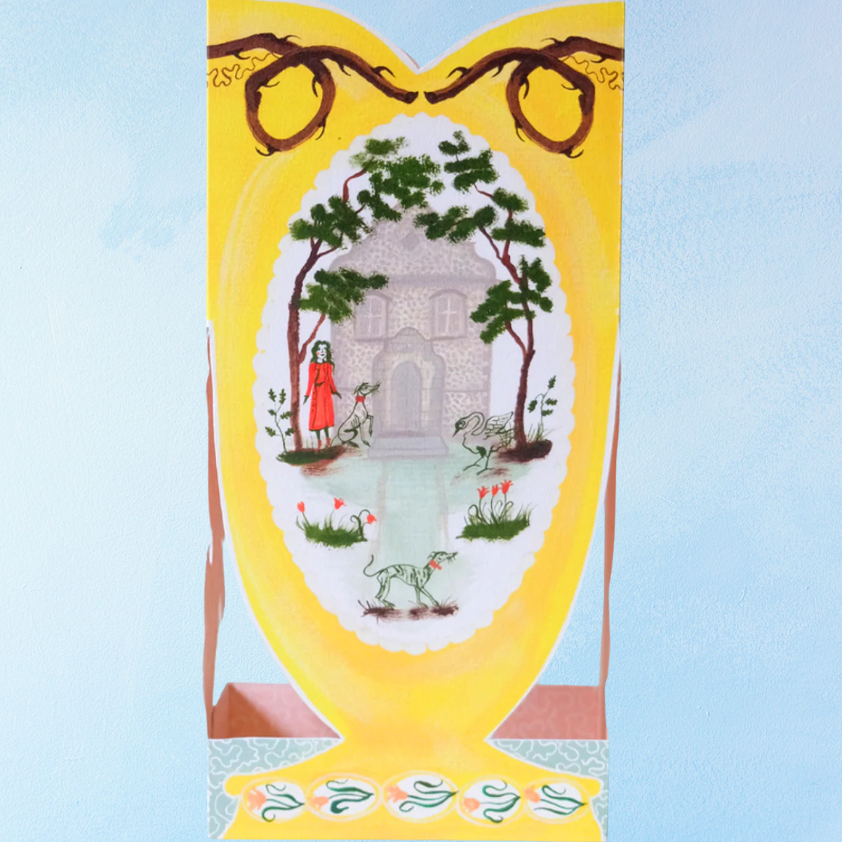 This greeting card is so much more than a message, it's a presentable piece of 3D art! Fold it open to display it like a real chalice or vase. You can even slide it over a short vessel to house some florals. Designed by artist Polly Fern