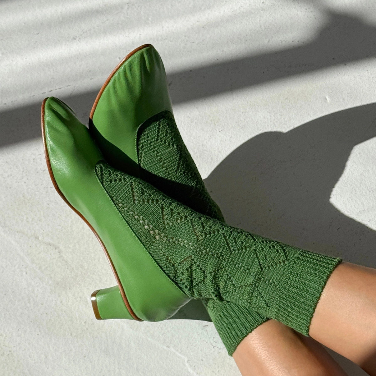 socks - modal eyelet - palm green