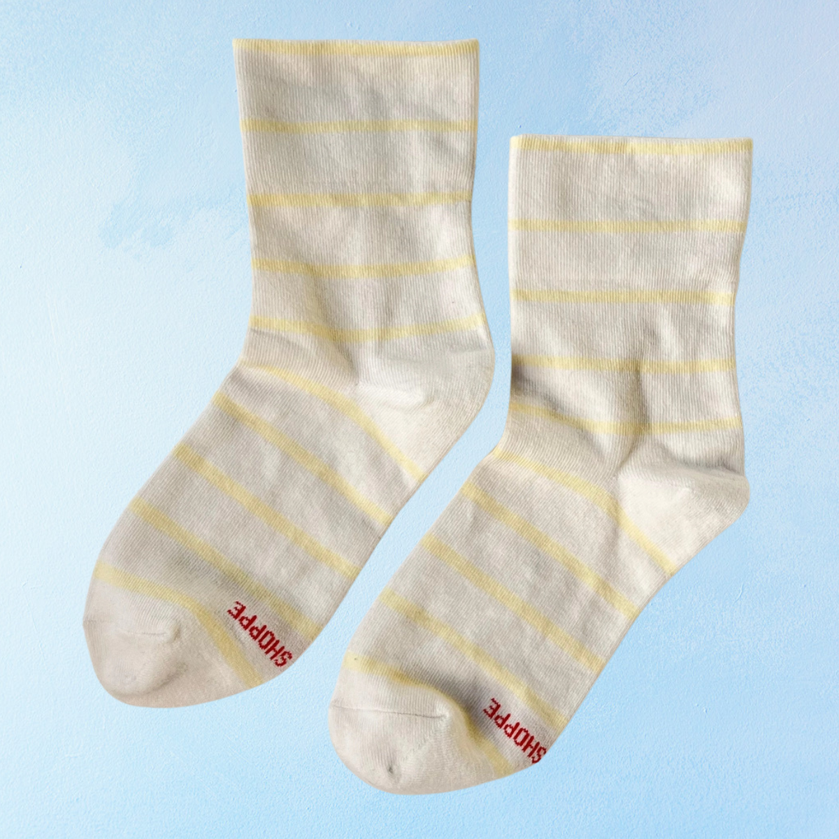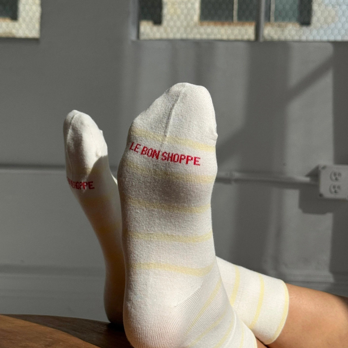 We believe stripes are a neutral. The Wally sock from Le Bon Shoppe is a classic sock with a little Parisian flair.  Perfect for poking out under trousers or complementing a simple sneaker. Made from breathable cotton with a thick band that leaves no imprint!