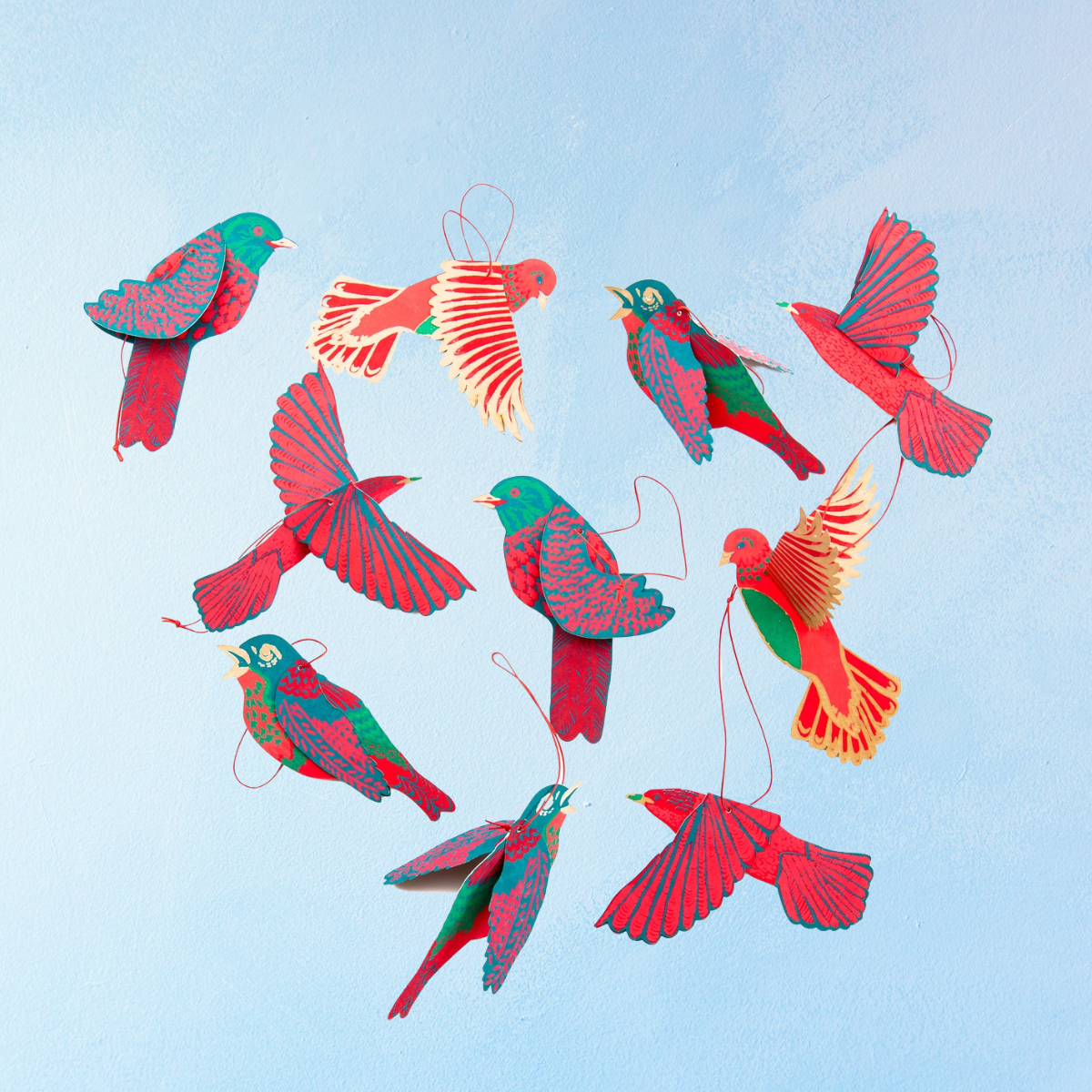 These bird ornaments will add a touch of nature and colour to any space. Hang them up high or down low—either way, they are sure to remain vibrant all year long.