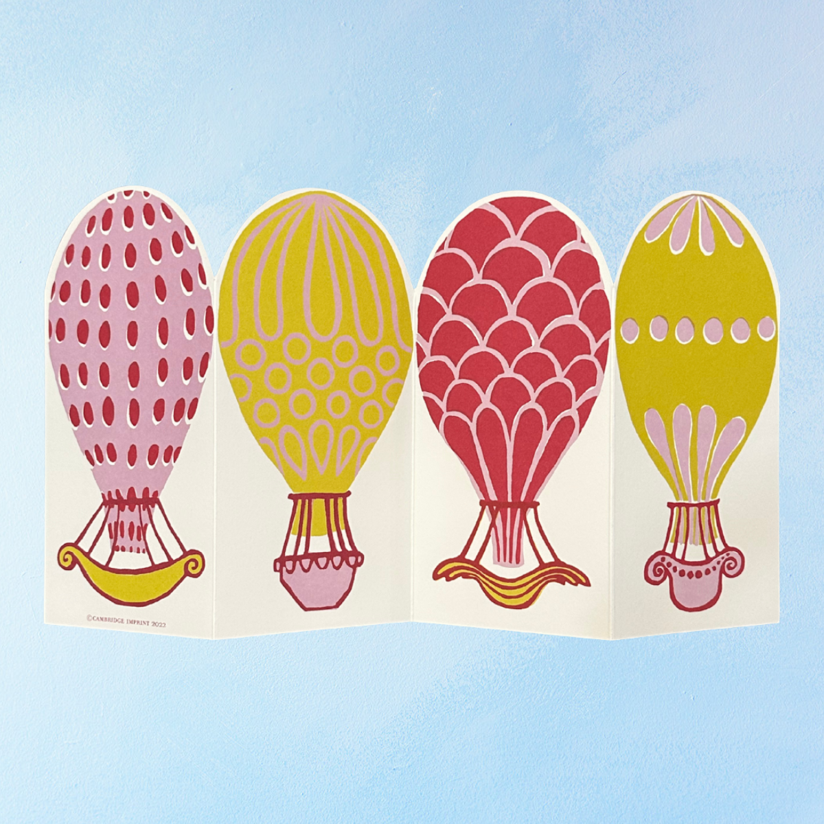Fun and playful double sided concertina card featuring an array of hot air balloons. You can write your own message on the special panel provided.