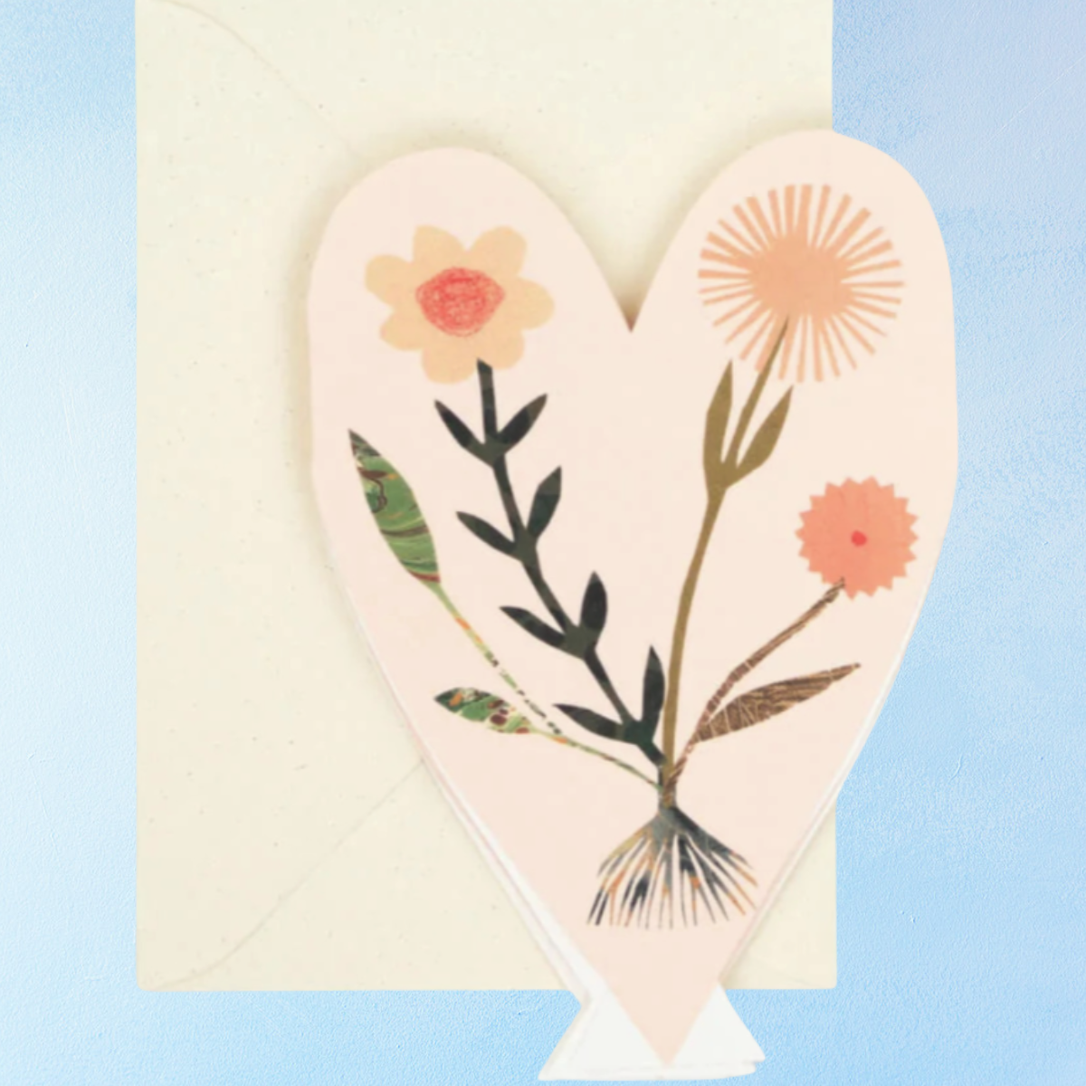 Be my valentine? This special greeting card folds out to reveal six hearts, each with a different bouquet of wild flowers.