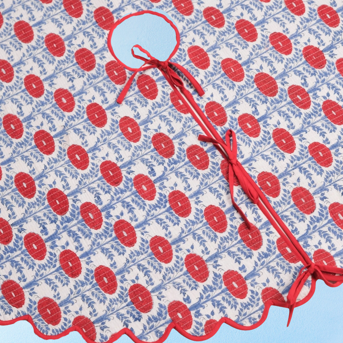 Give your skirt a makeover with this not only block-printed and scalloped tree skirt but a quilted one too.