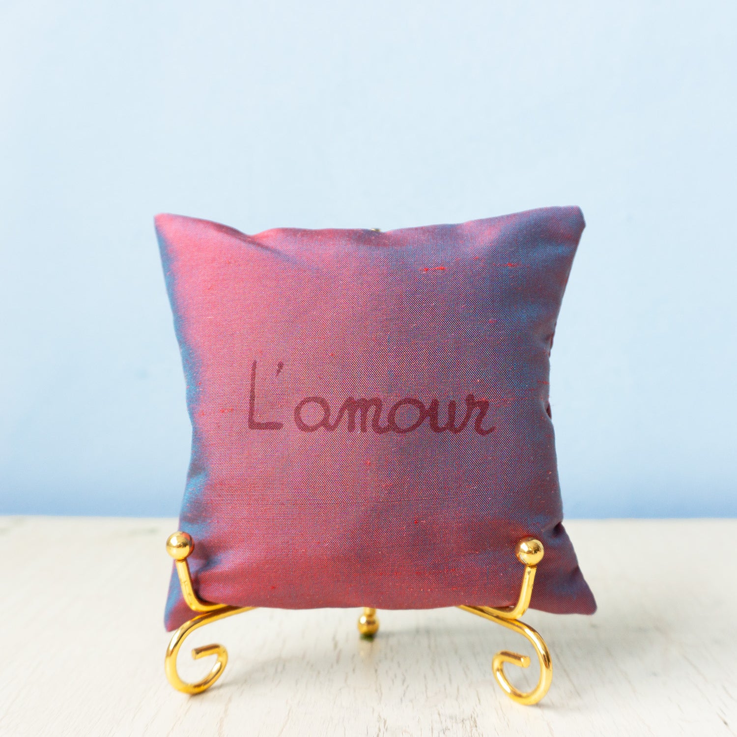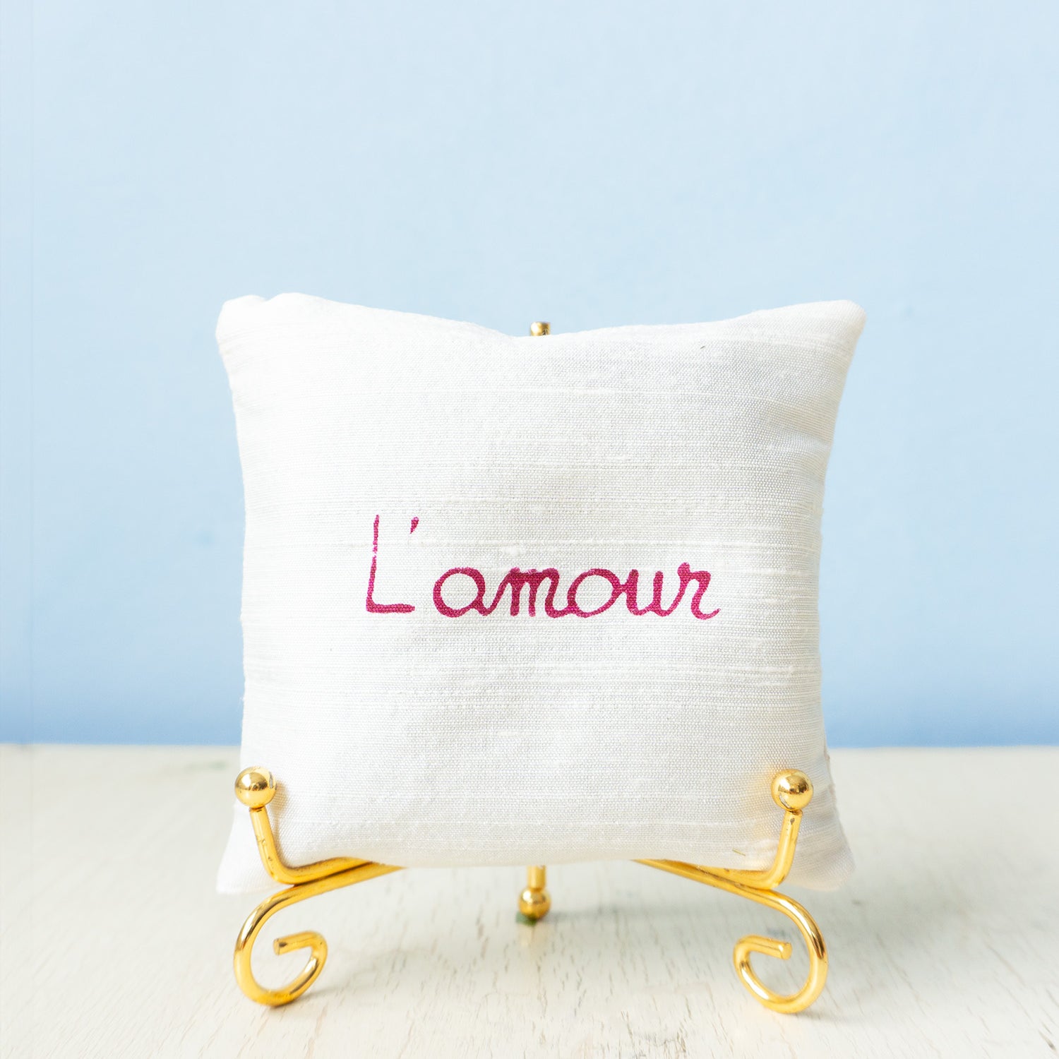 These aromatic lavender sachets are made of pure dupioni silk, which has a subtle, romantic sheen. Printed with the word "L'amour," place these fragrant little sachets in a basket, drawer, or on furniture for a fragrant and aesthetic flourish.
