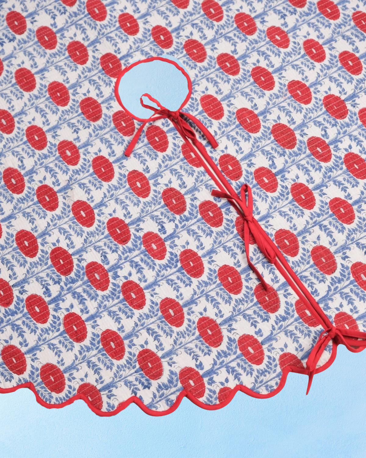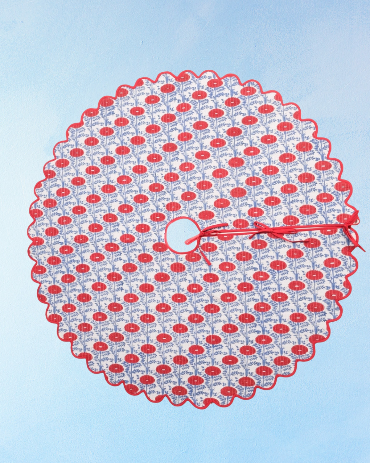 scalloped block printed tree skirt - blue