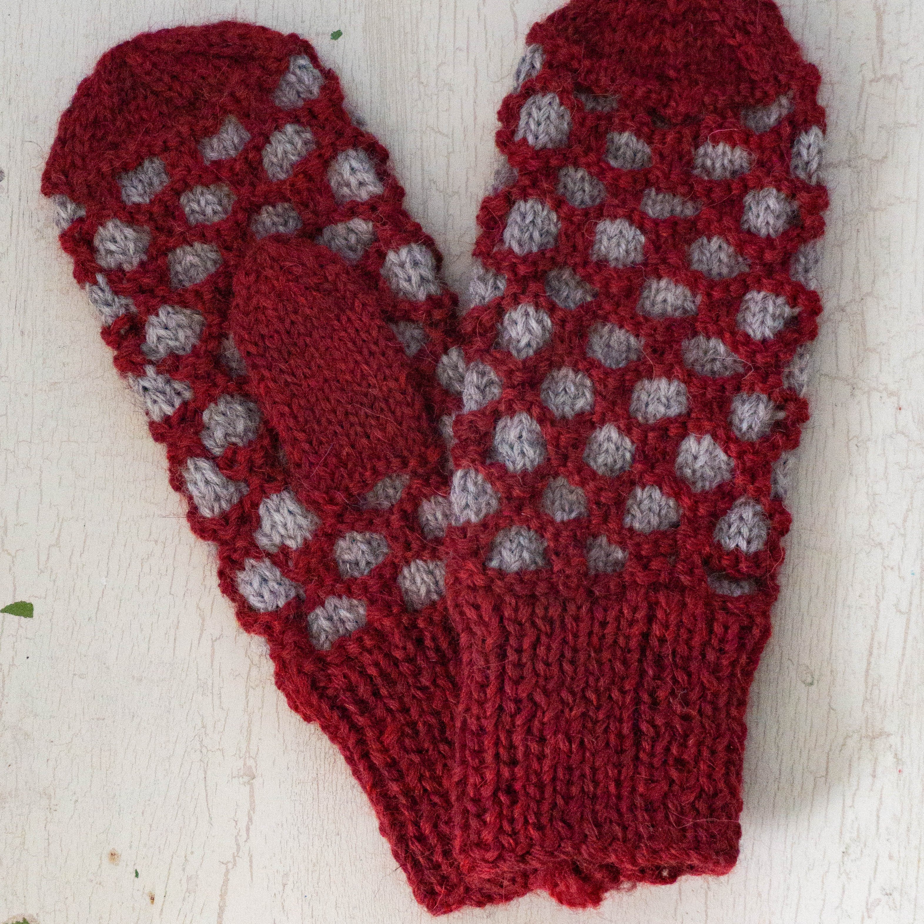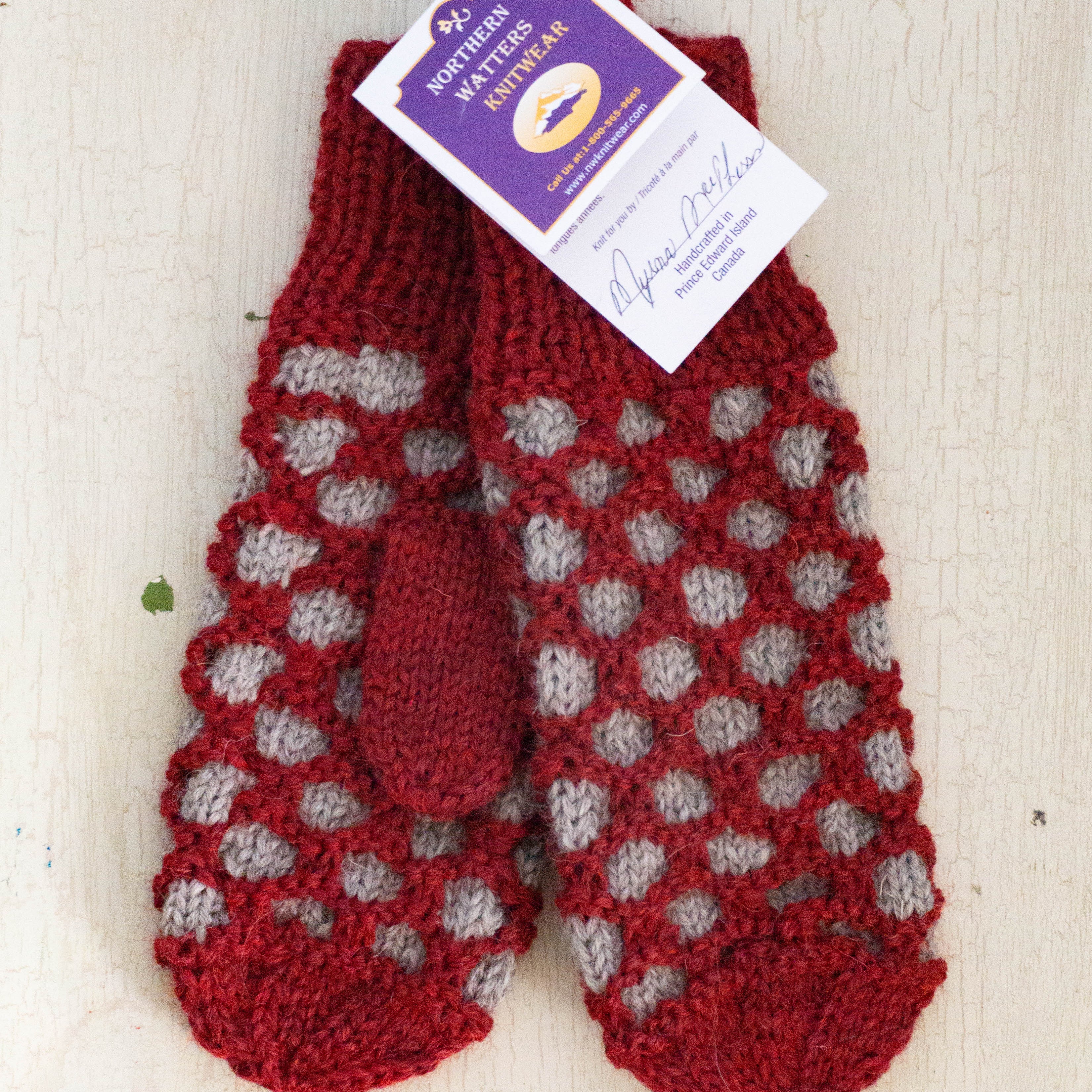 This style of mitten is sometimes called Bubble, Newfoundland, Honeycomb or Stained Glass Mittens. They are made of 100% British worsted wool and are knit by a group of skilled knitting grandmothers, in their homes, using traditional methods and patterns.