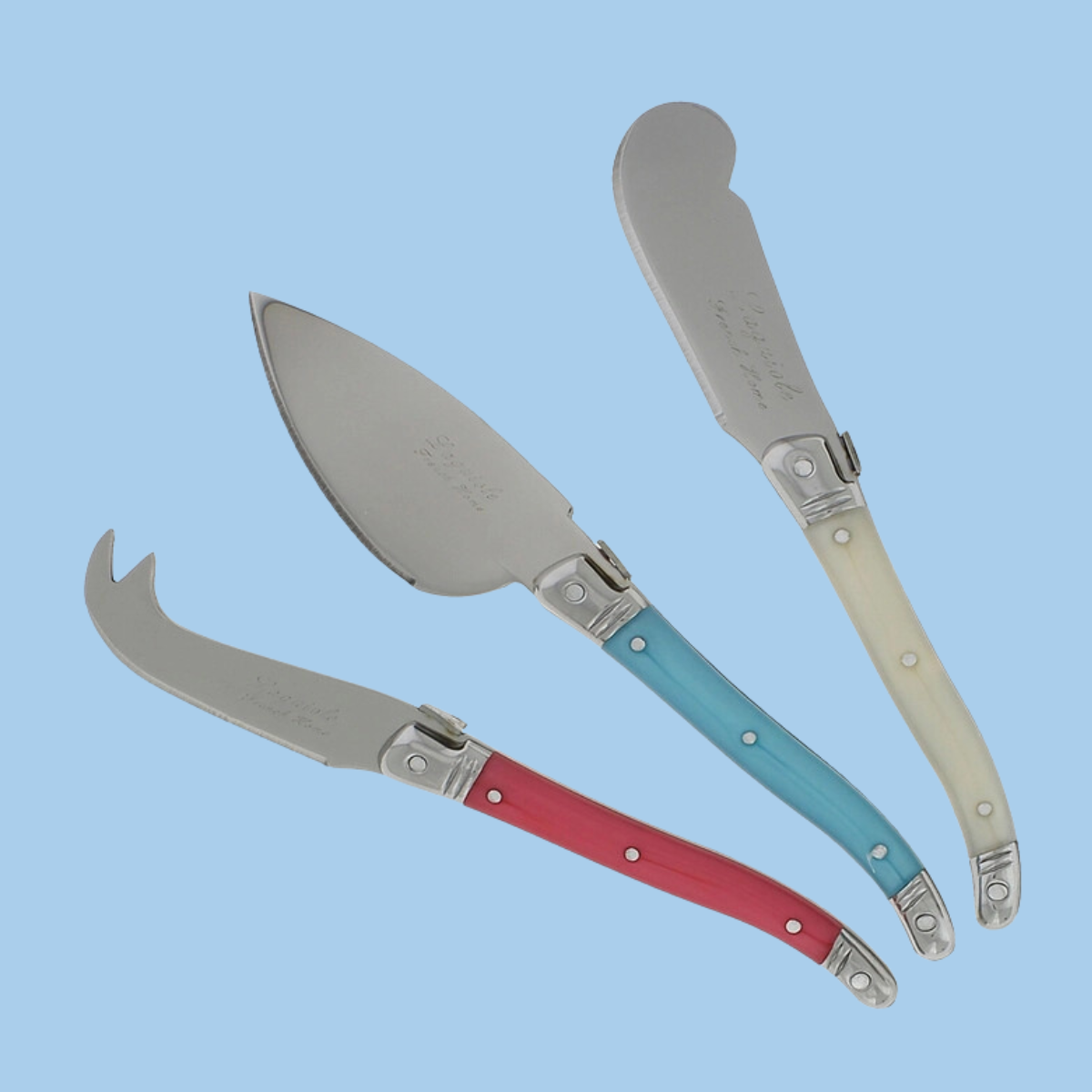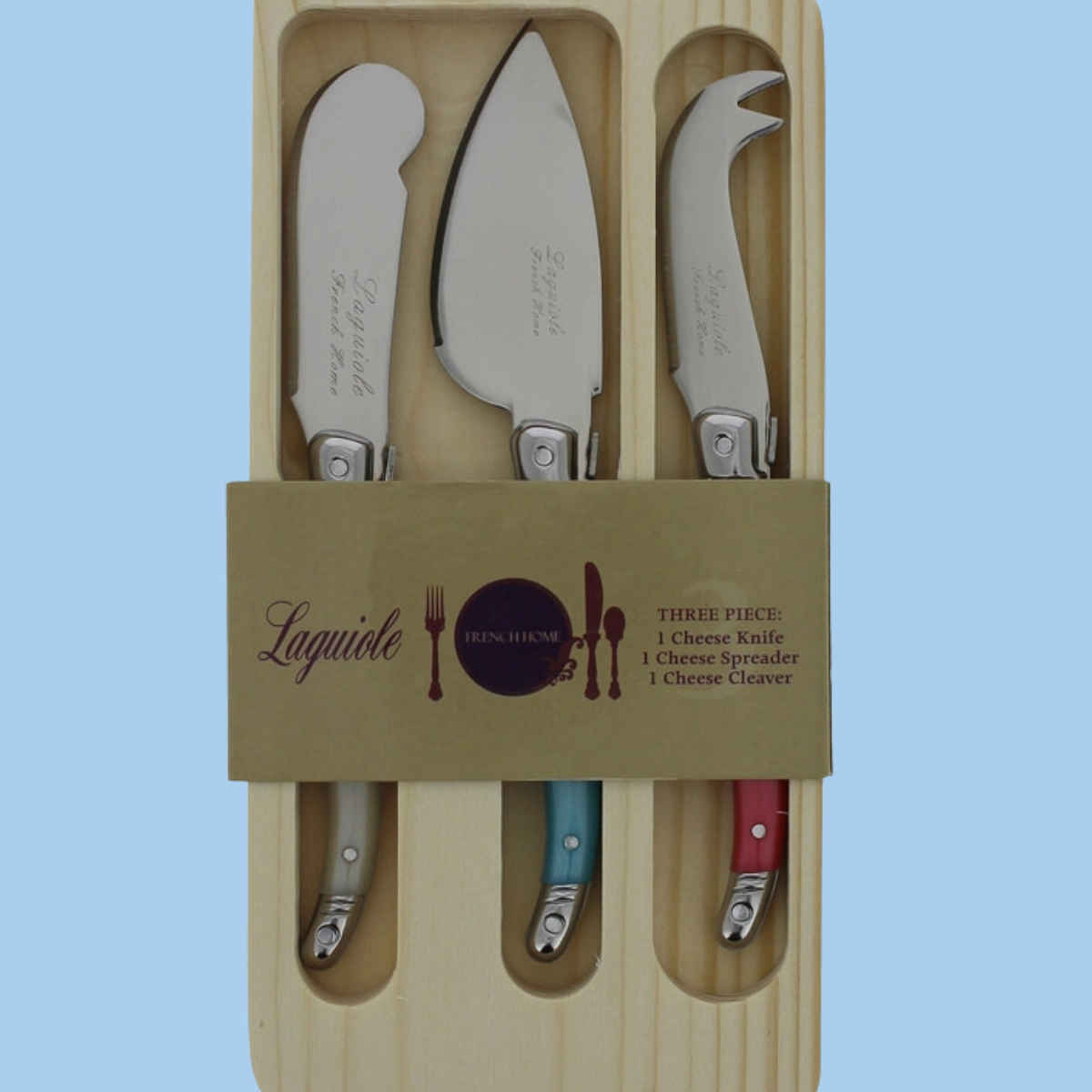 Laguiole three piece cheese knife set - coral/turquoise/ivory