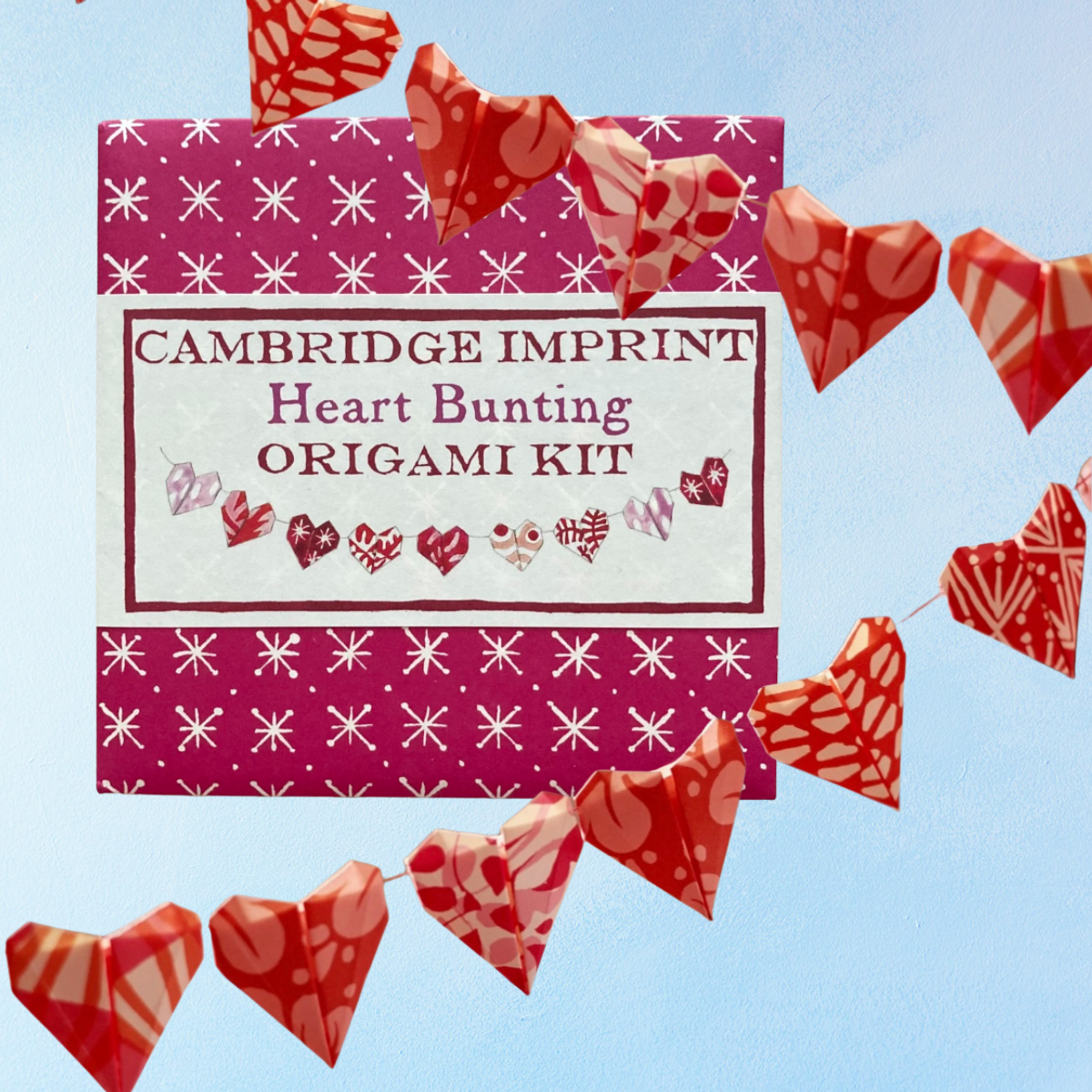 This kit contains everything you need to make 36 large origami hearts, or 144 small ones: 36 assorted sheets of red and pink Cambridge Imprint patterned papers, with a beautifully produced book of instructions, all in a wallet of patterned card.
