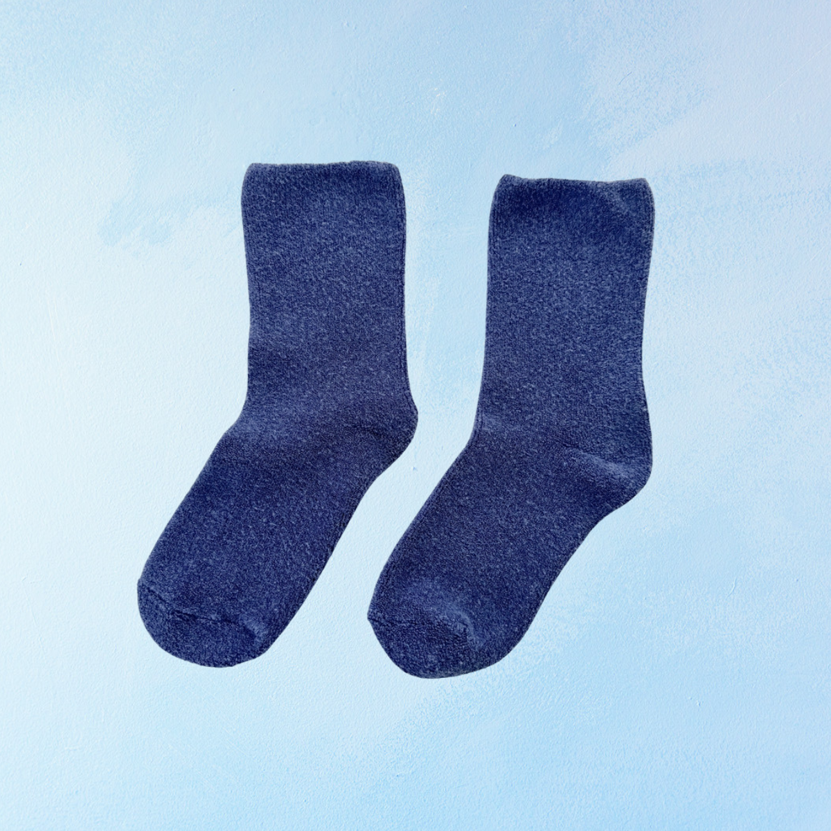 Like walking on clouds! These are hands down the comfiest and cutest socks to wear all year long. Made from a fluffy, terry cotton blend yarn that is breathable and unique. While the exterior is fluffy, the interior is smooth and airy. Pair them with your favourite clogs or slides and enjoy the extra cushion.
