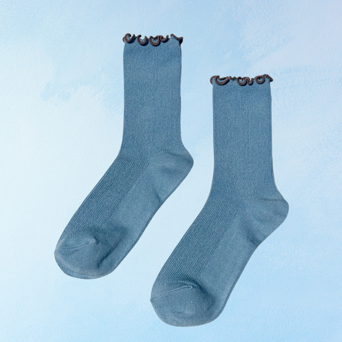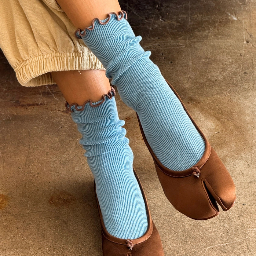 socks - ruffled modal - powdered blue and brown