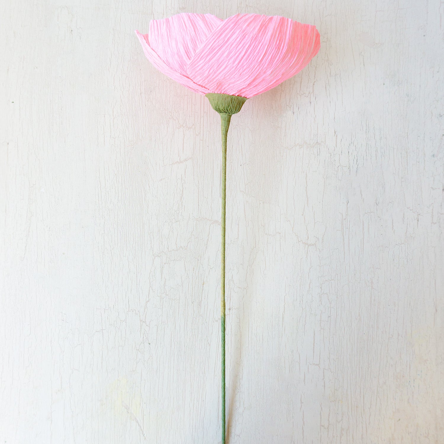 This pink paper poppy is too pretty for words! And yet we try. Handmade in Ukraine from fine Italian crepe paper, this queen looks beautiful alone or in a bouquet.