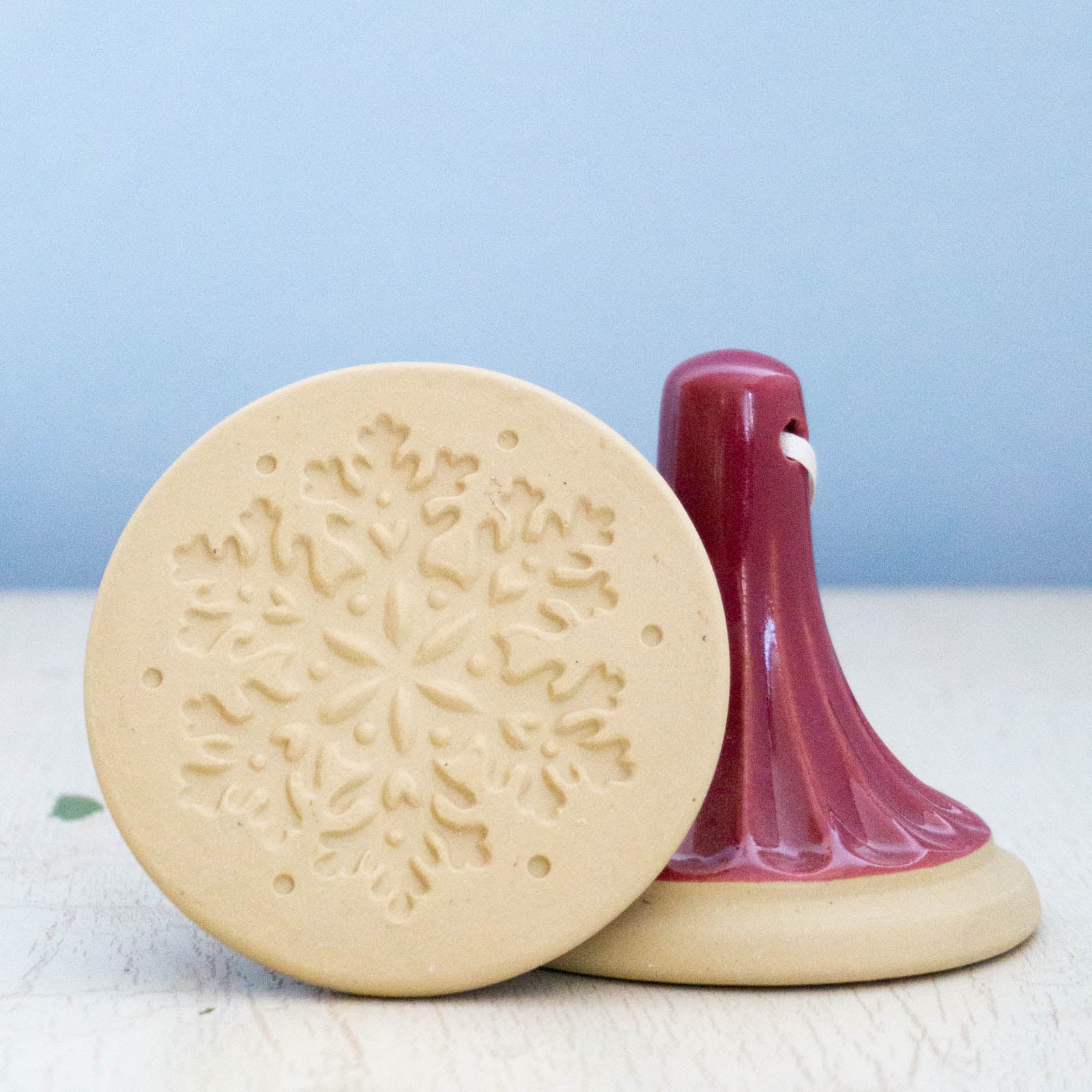 The baker inside your heart is jumping for joy right now! This cookie stamp is handmade from stoneware pottery in Bedford Virginia. Stamp features a snowflake rose design to stamp into any cookies your heart desires.
