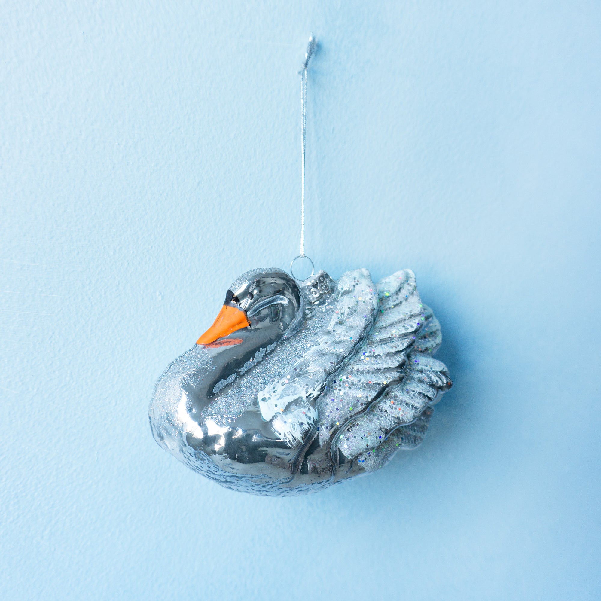 What a beauty! This grand swan glass ornament comes dusted in glitter for extra festive decadence. Available in several colours, so please note that your swan colour may be a surprise.