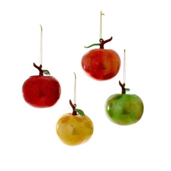 Add a fruity touch to your tree this holiday season with these beautiful glass apple decorations. Ornament comes with string attached for hanging.