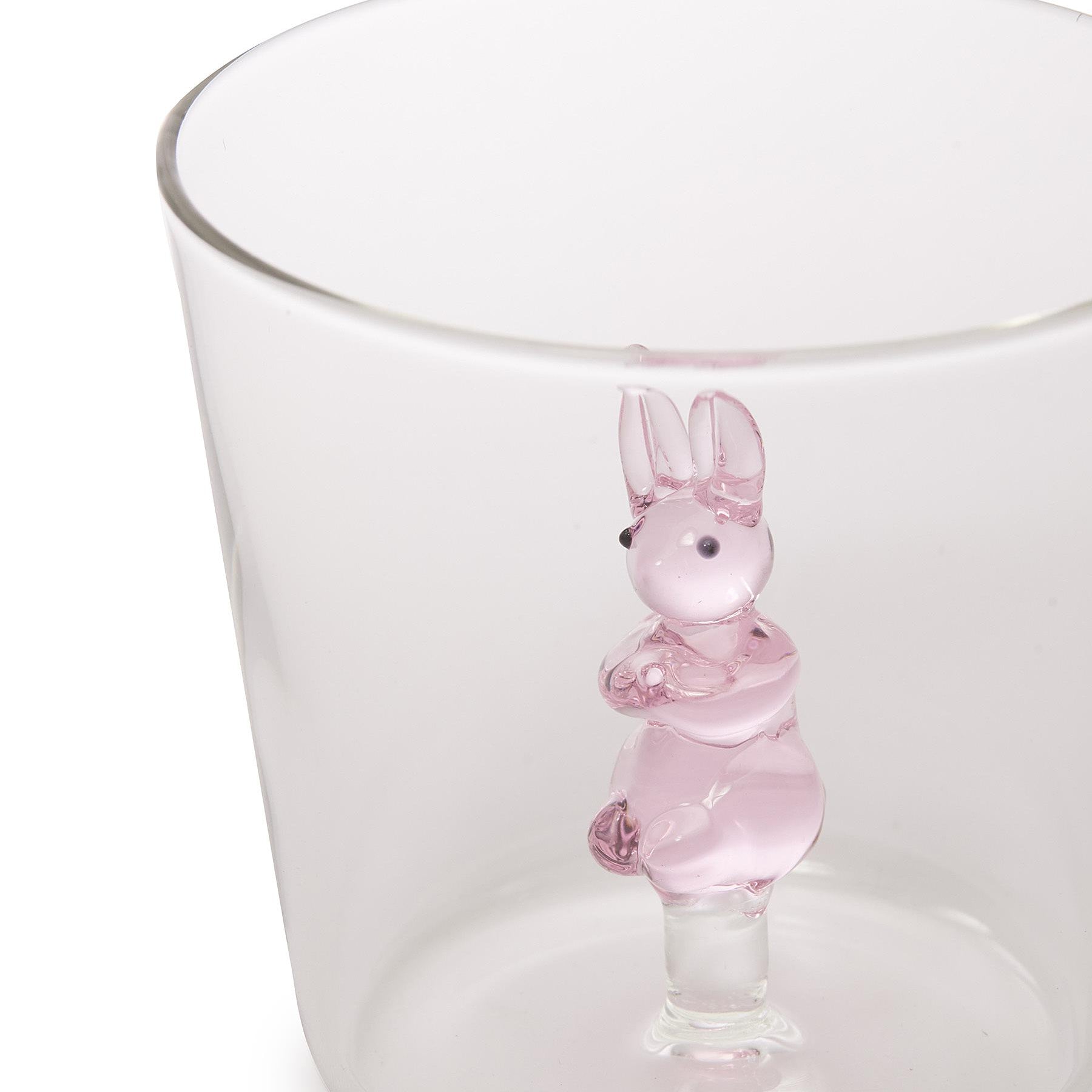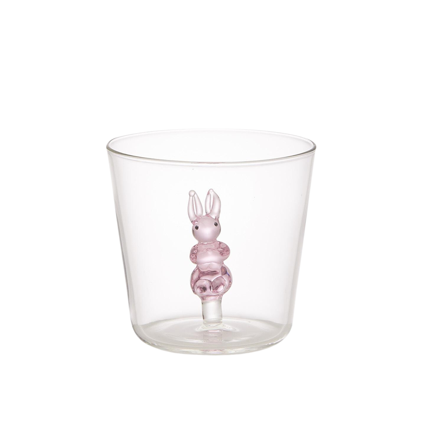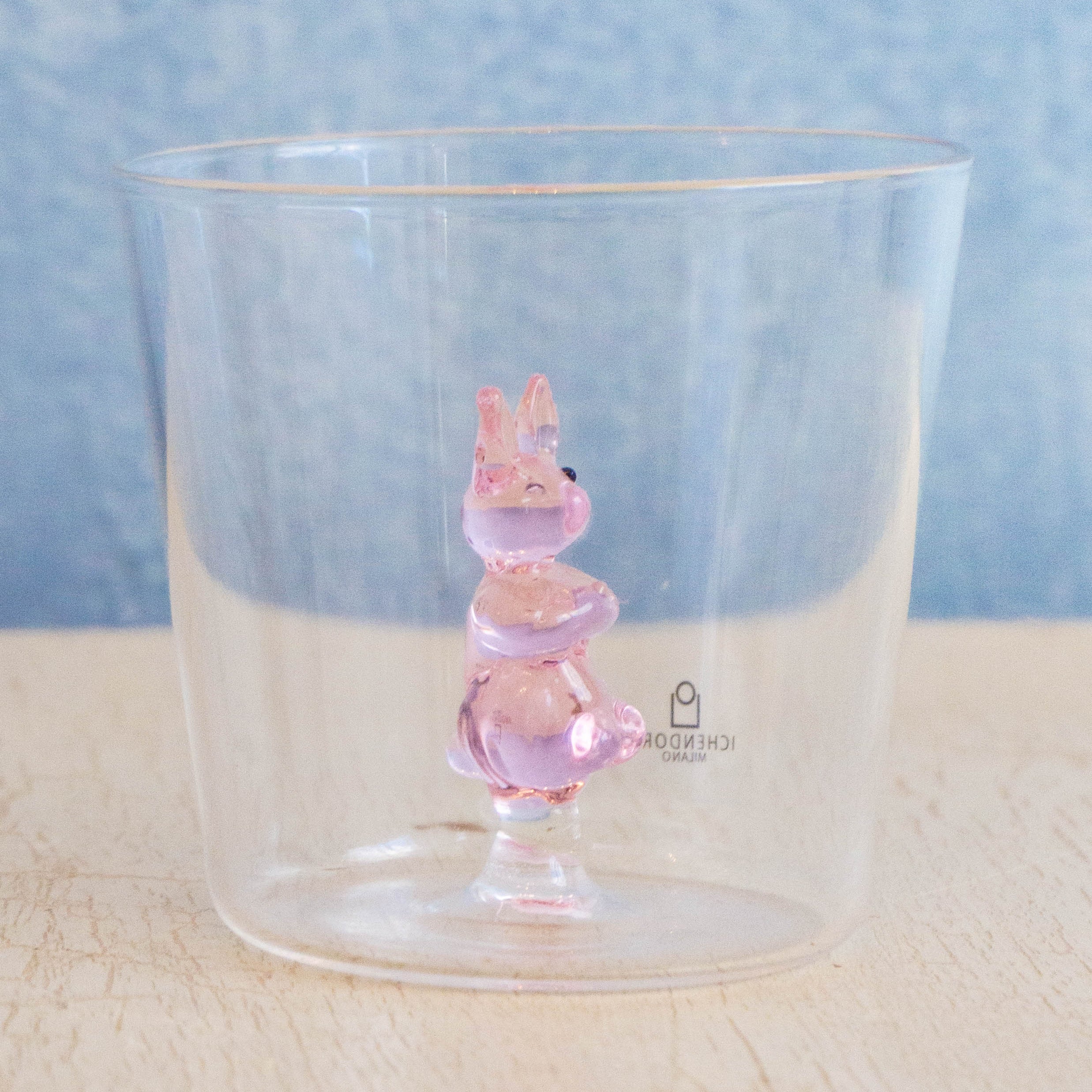 This whimsical glass tumbler with pink bunny figurine transforms the act of drinking from "a thing you do to stay alive" to "a reason to live". Kidding/not kidding.
