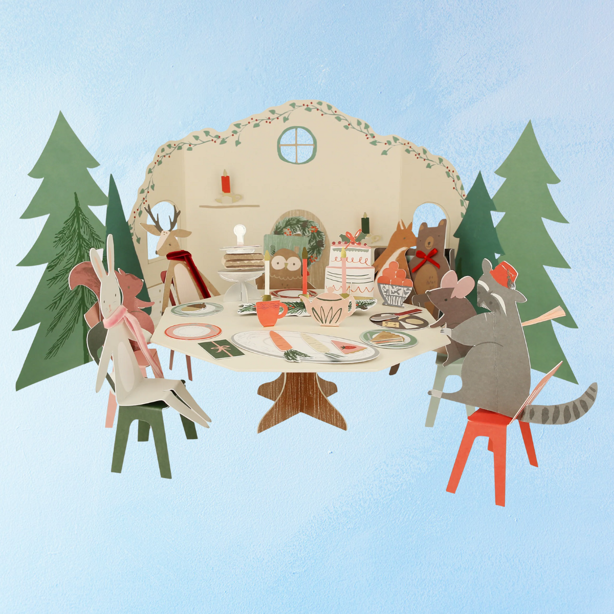3D paper animals, chairs, a table, crockery and cutlery and extraordinary embellishments like luxurious velvet ribbons and cute pompoms. Not just for Christmas, kids will love to play with this long after the holidays are overs.