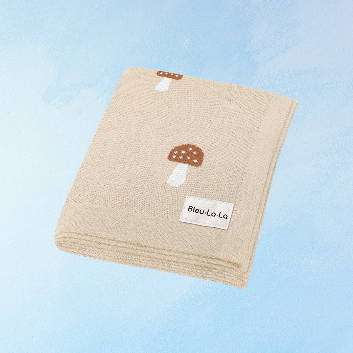 Precious baby blanket/swaddle with little mushrooms to welcome a newborn to world!