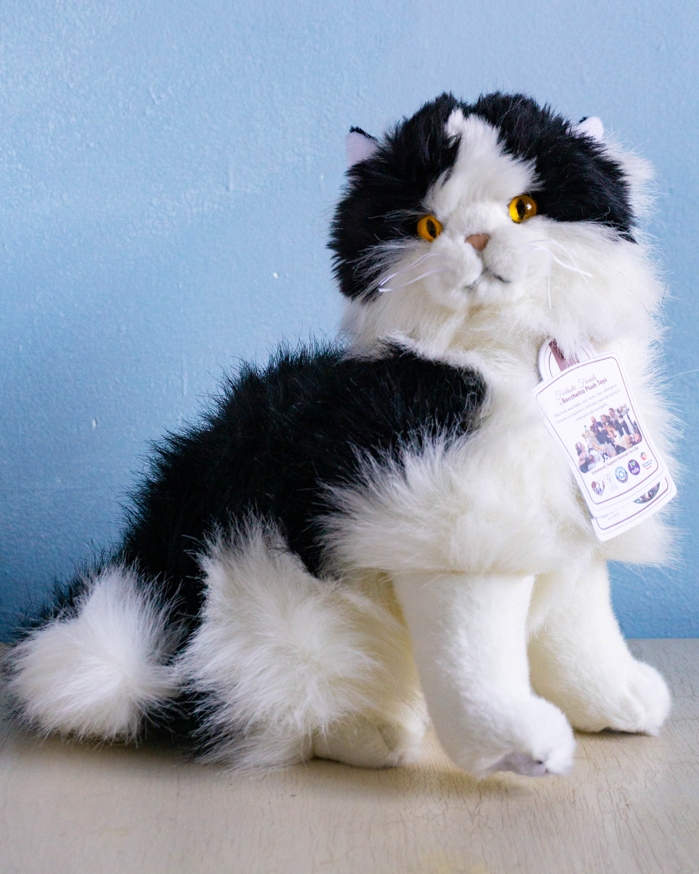 stuffed animal - white and black piebald cat