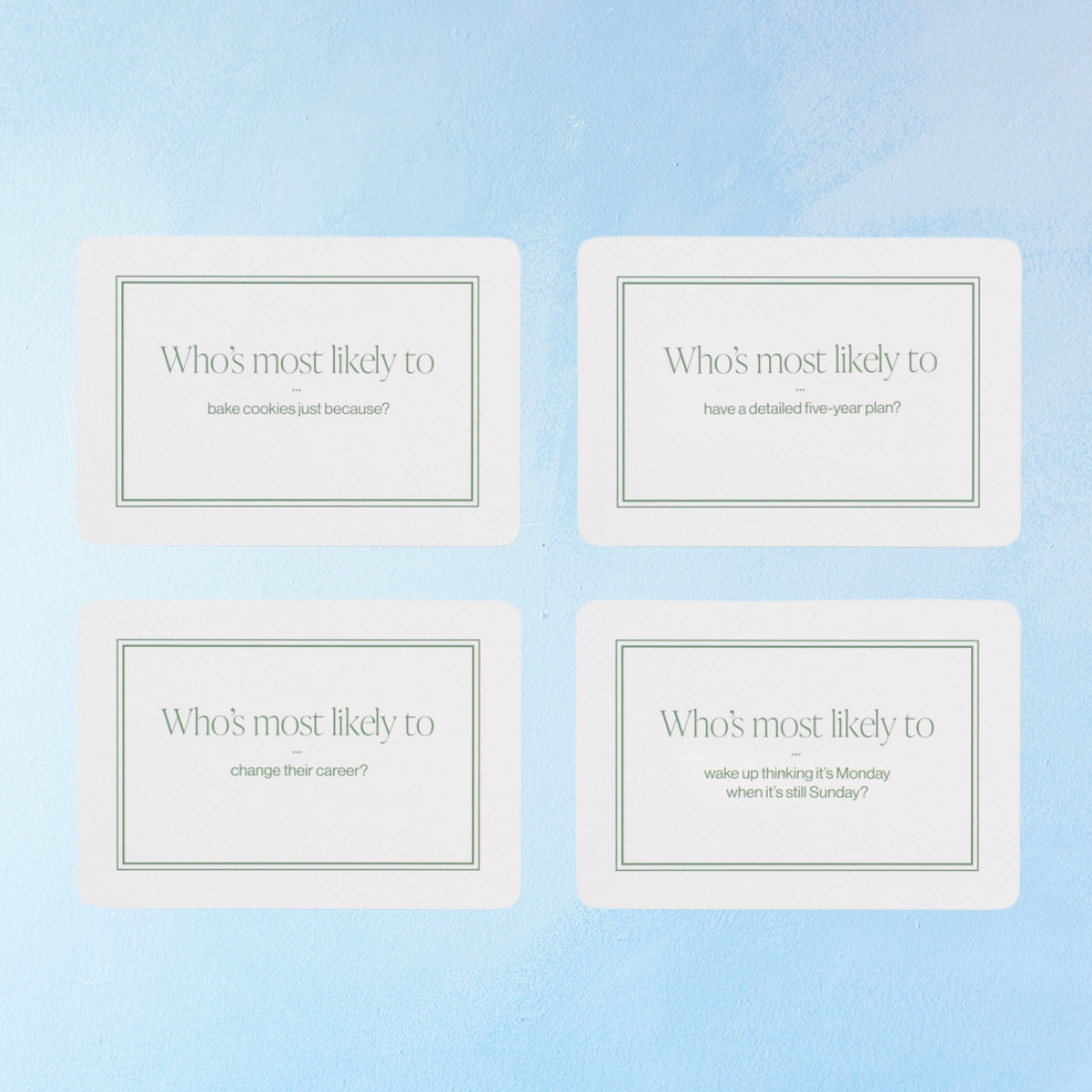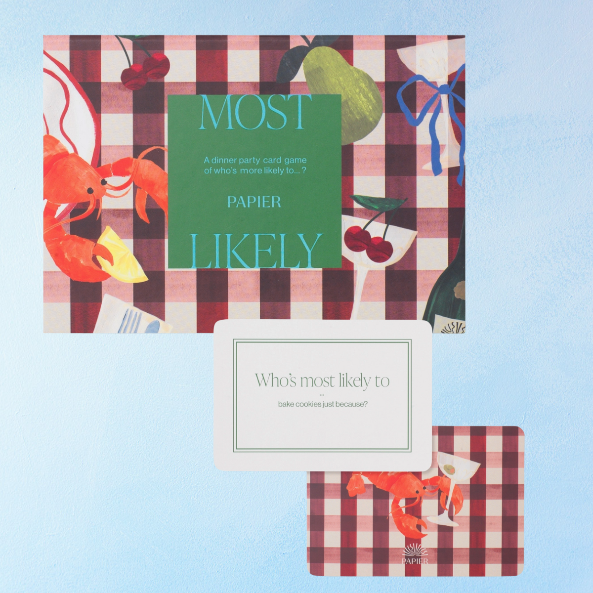 Designed to spark good conversation and bring your guests closer together, the "most likely" dinner party card game is the perfect addition to your hosting kit. Comes with a variety of fun and thought provoking questions to pass around the table.