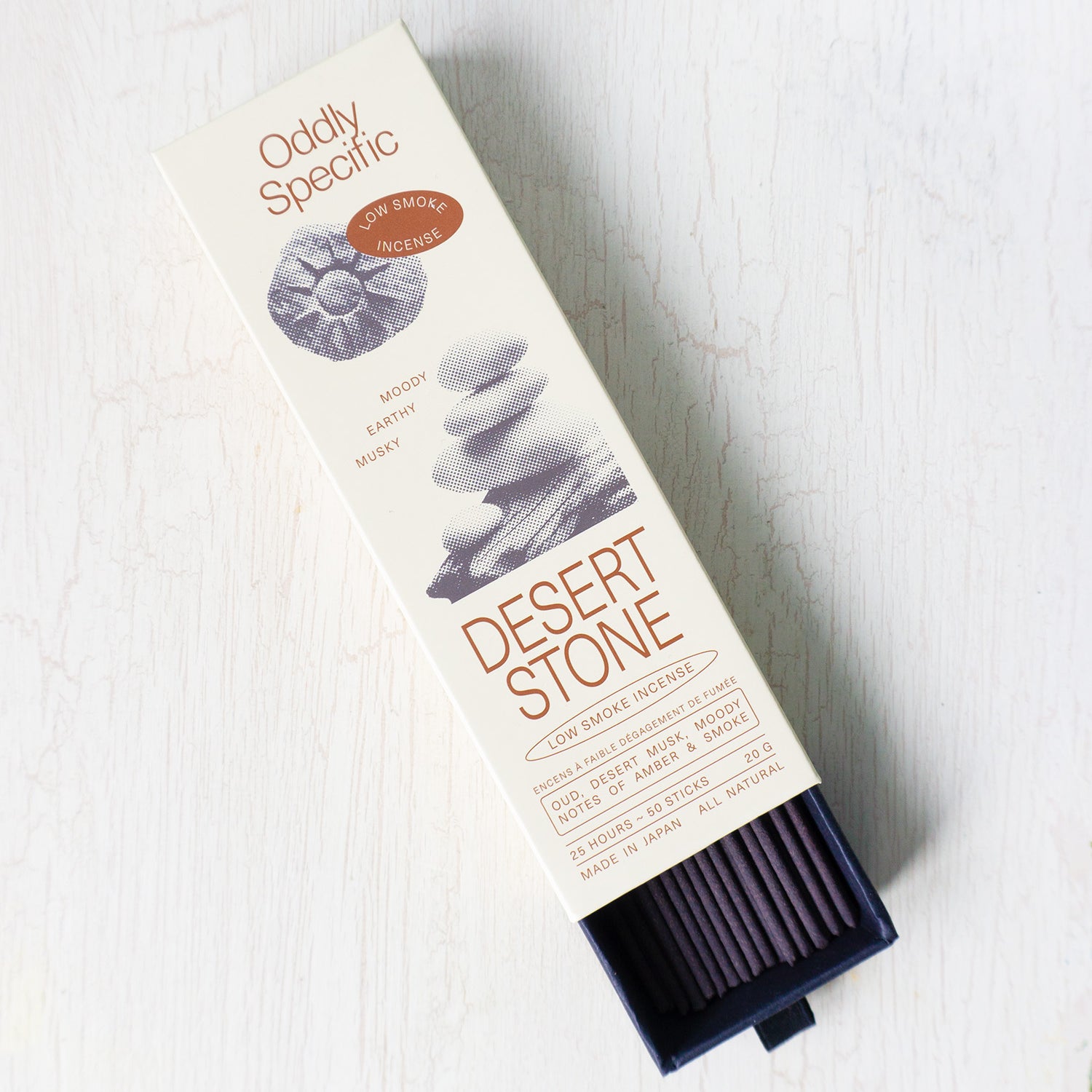 Scent notes: Oud, desert musk, moody notes of amber and smoke. Made in Japan using natural ingredients, low smoke incense creates a unique and comforting experience.
