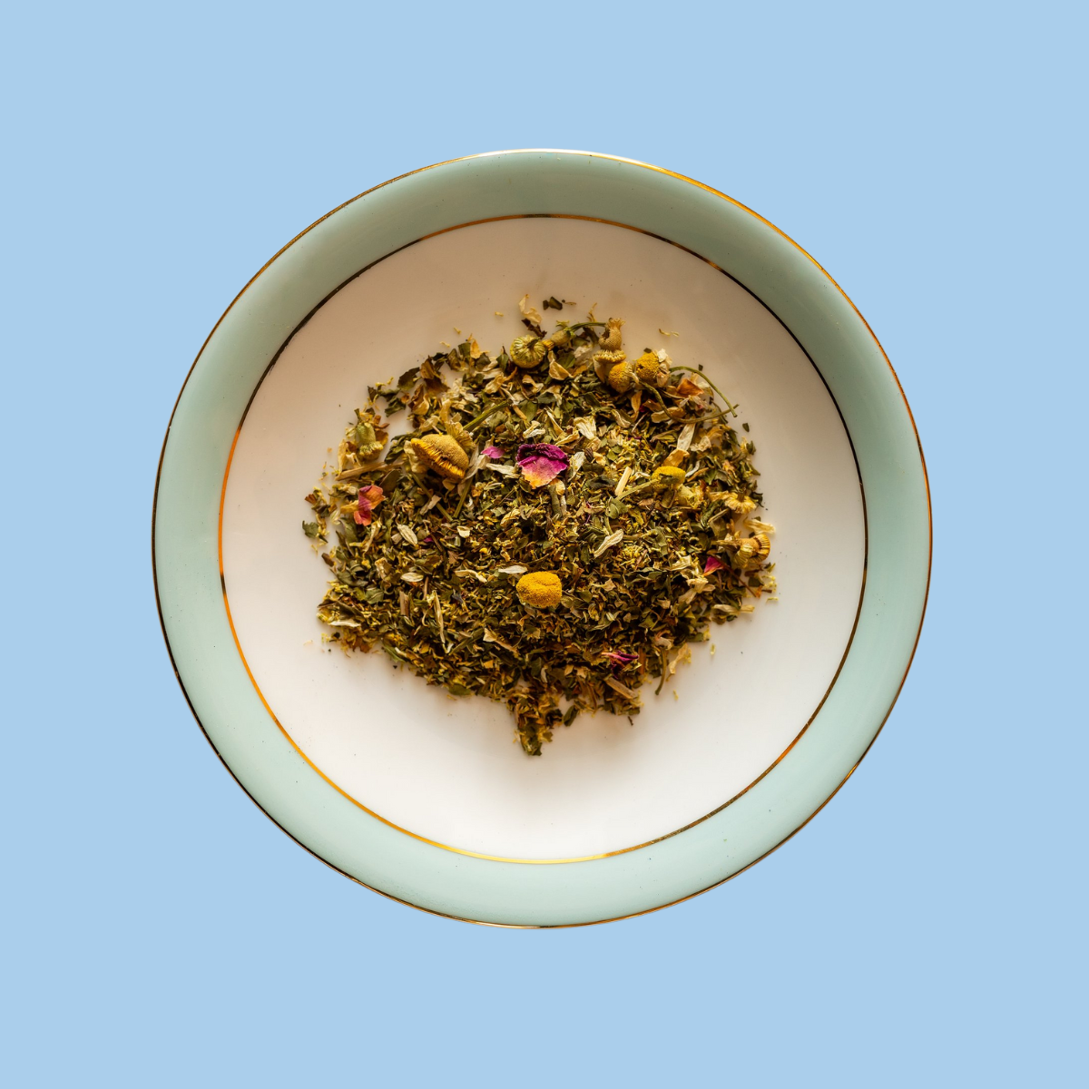 This tea blend is made with calming chamomile, mint, and rose petals—all perfect for quelling restlessness, anxiety. Perfect for settling full tummies and rocking you to sleep.