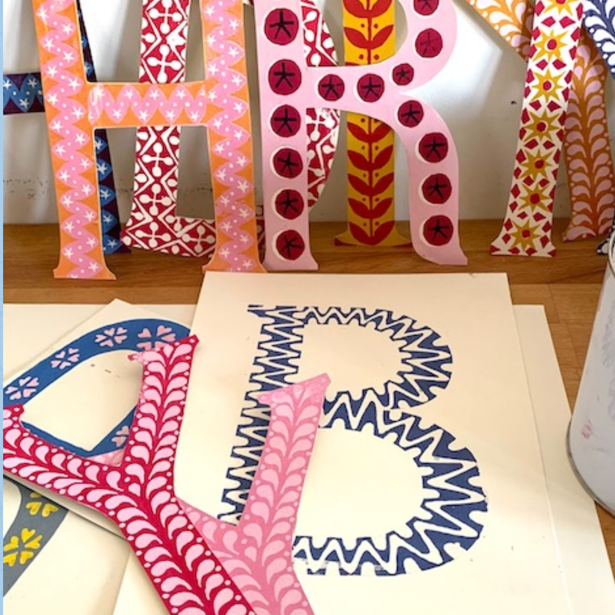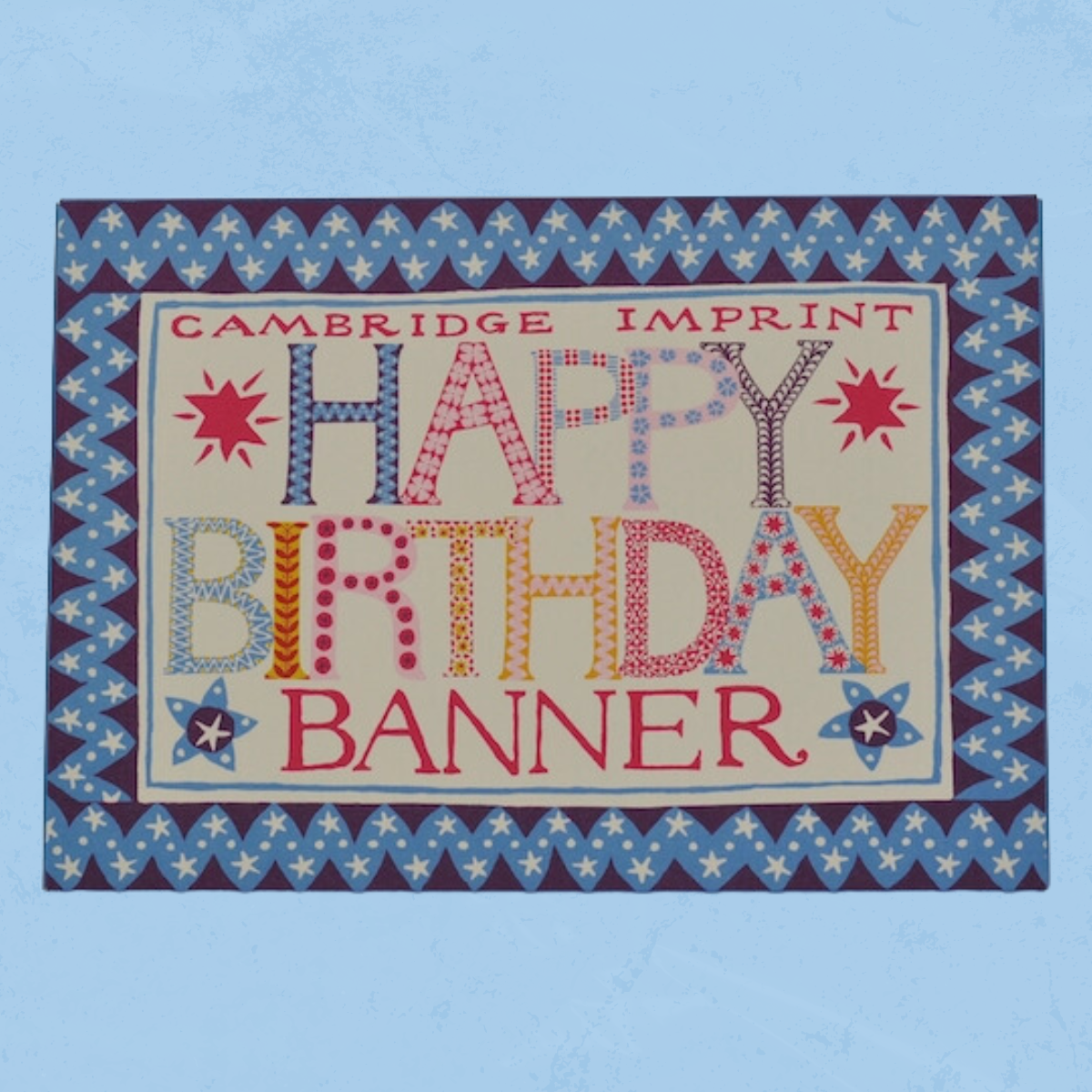This show stopping paper banner features thirteen large double-sided patterned card letters which spell out HAPPY BIRTHDAY. The letters are in assorted colours and designs, all with a strong folk art aesthetic, contained in a self-closing card wallet for long term storage.