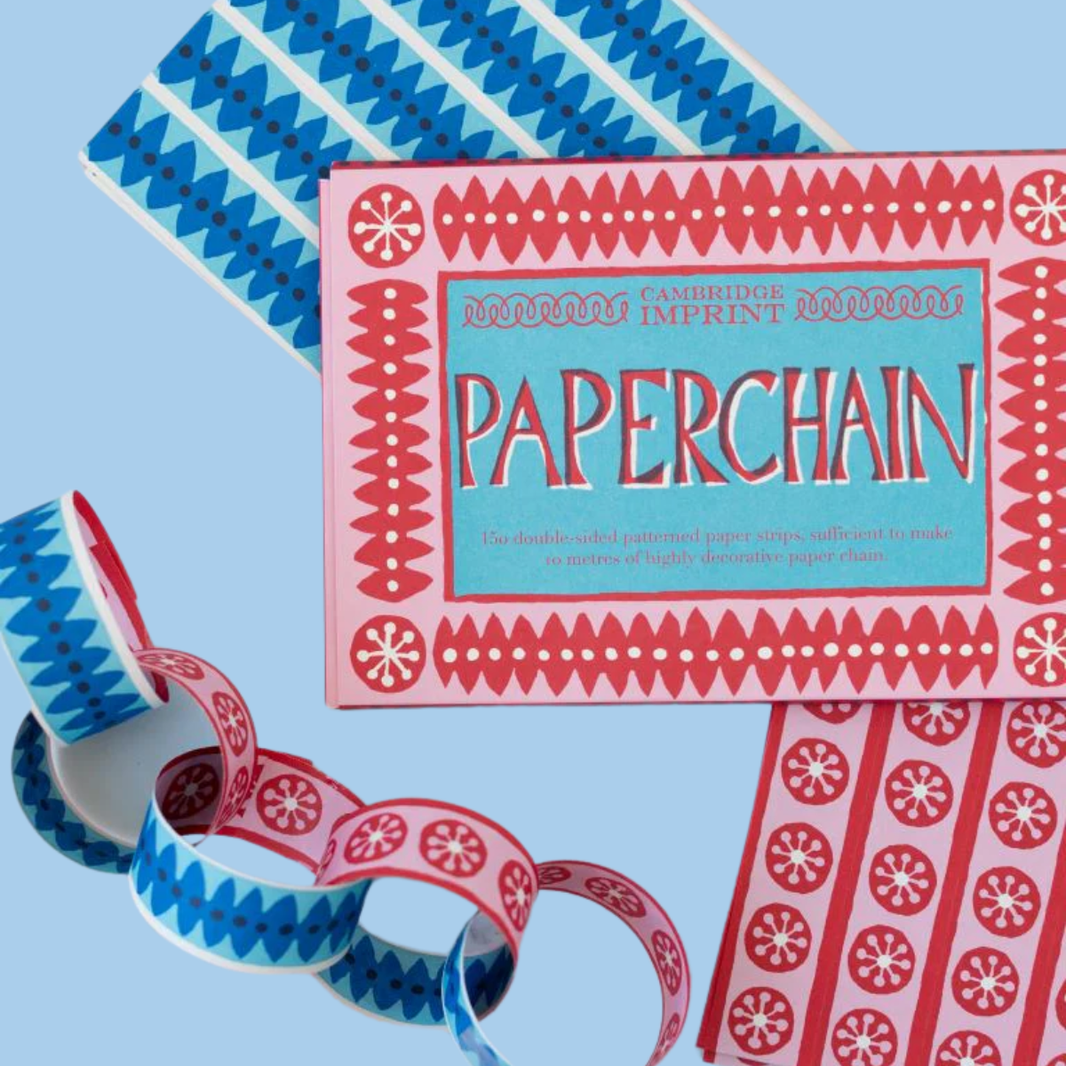Decorate your space and craft at the same time with this paper chain kit. Featuring 150 strips of double-sided patterned paper contained in a self-closing card wallet, it assembles to make a 10 metre chain of highly decorative garland.