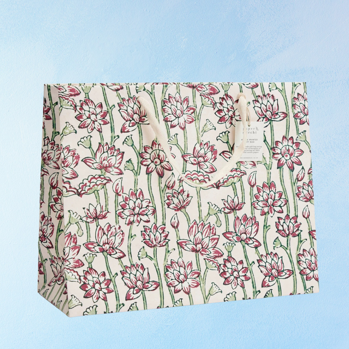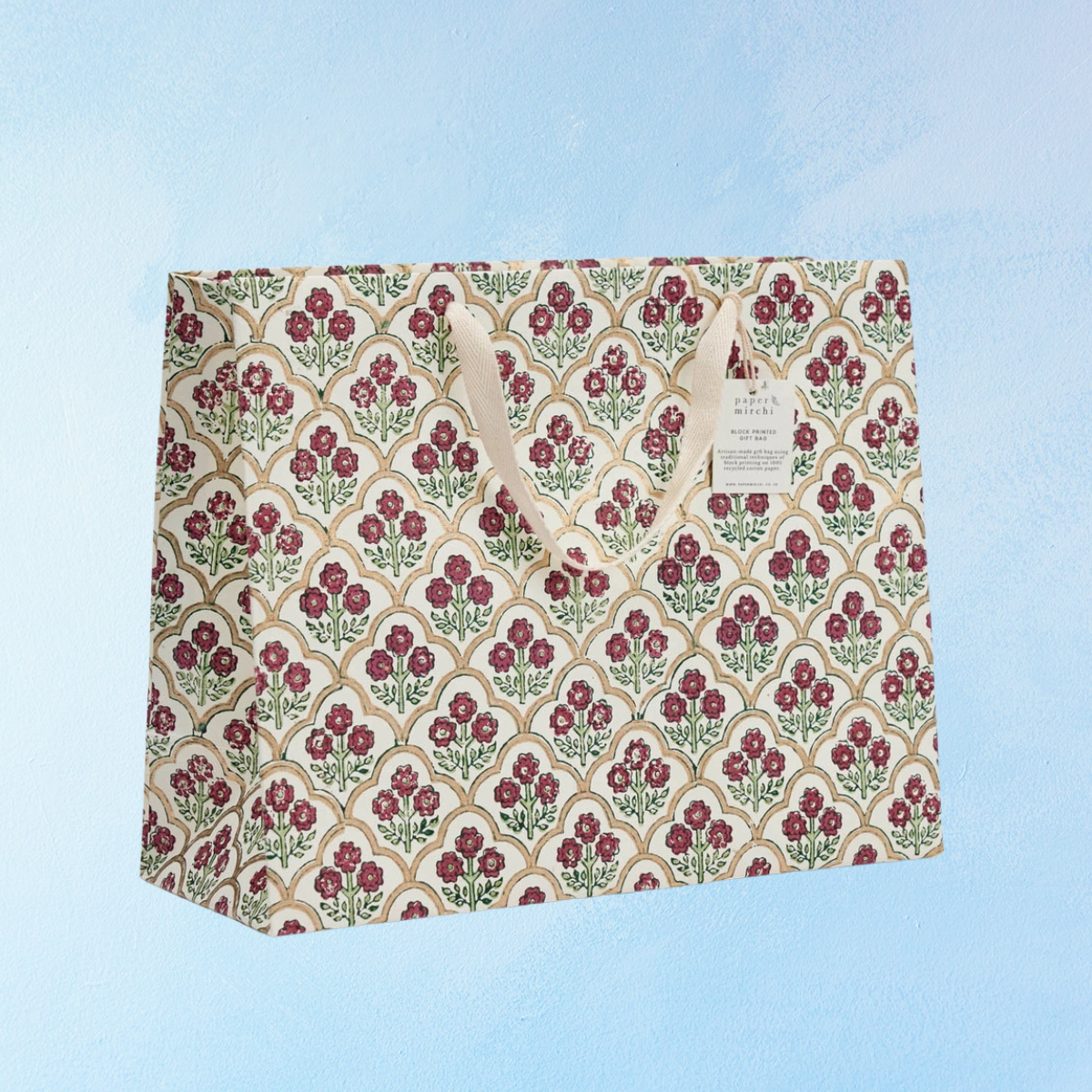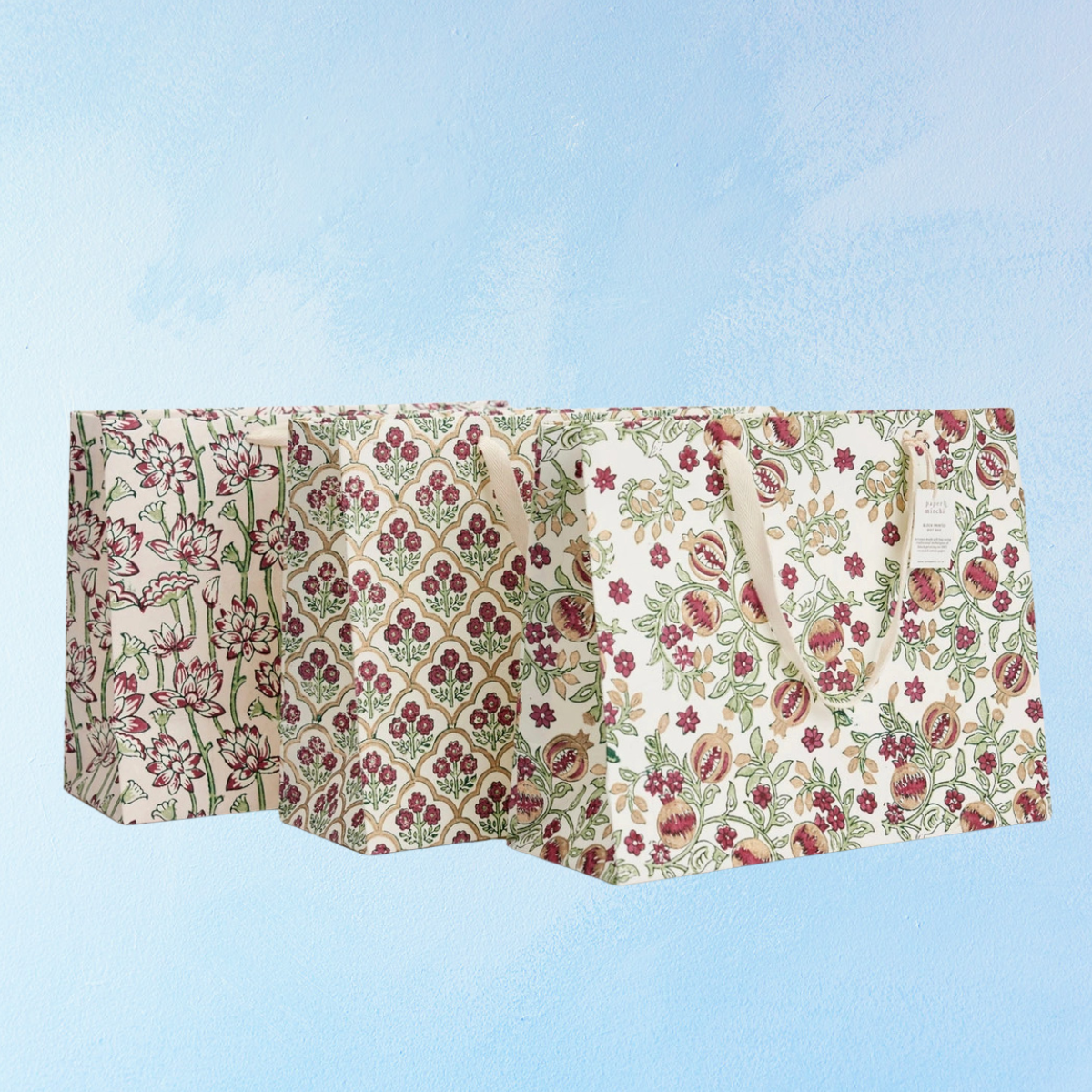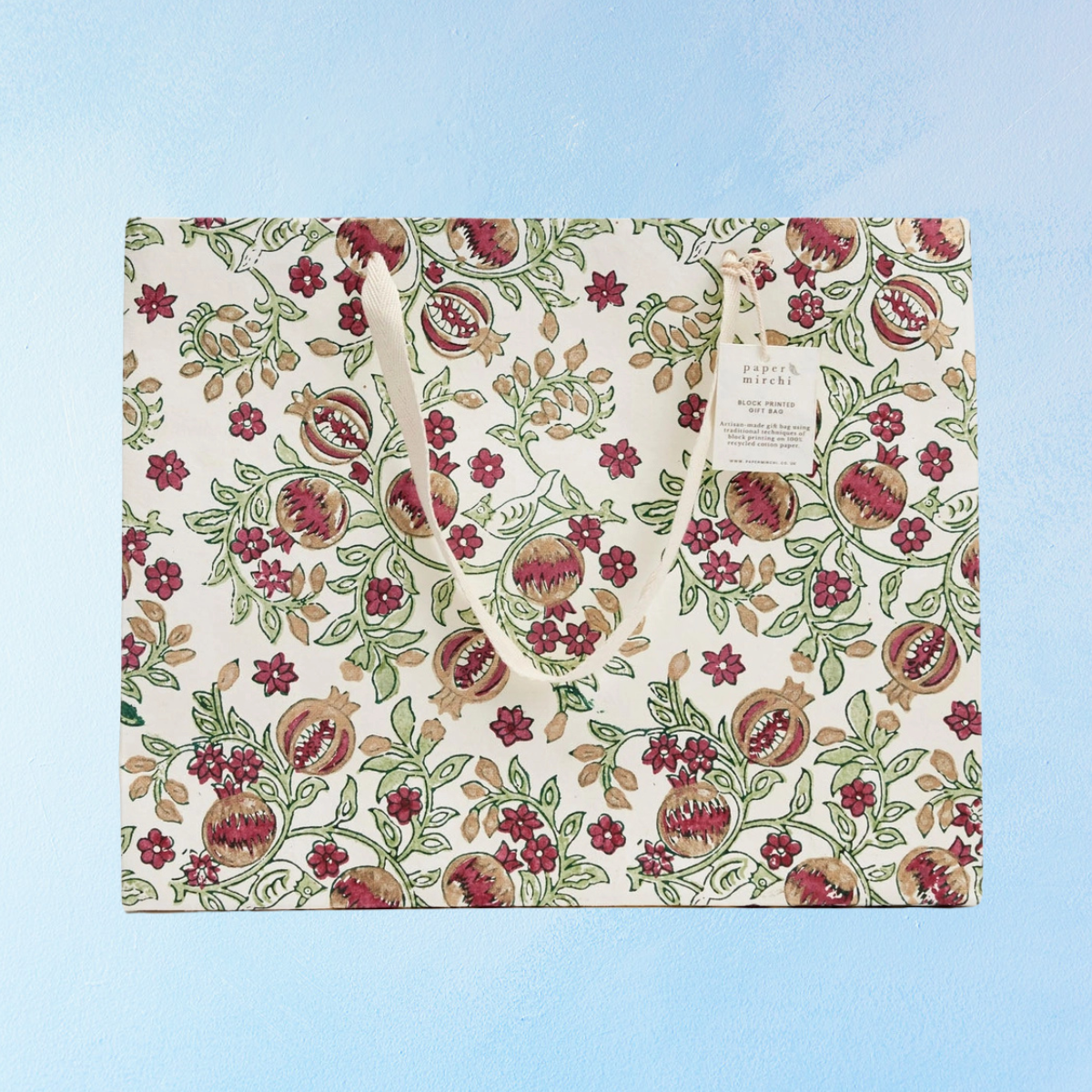 So you've found the perfect gift, now you just need to wrap it! The hand block printed gift bags are made from high quality, recycled paper material (so you can feel good about adding to your stash). Complete with cotton rope handles for easy carry. Go on, they deserve it.