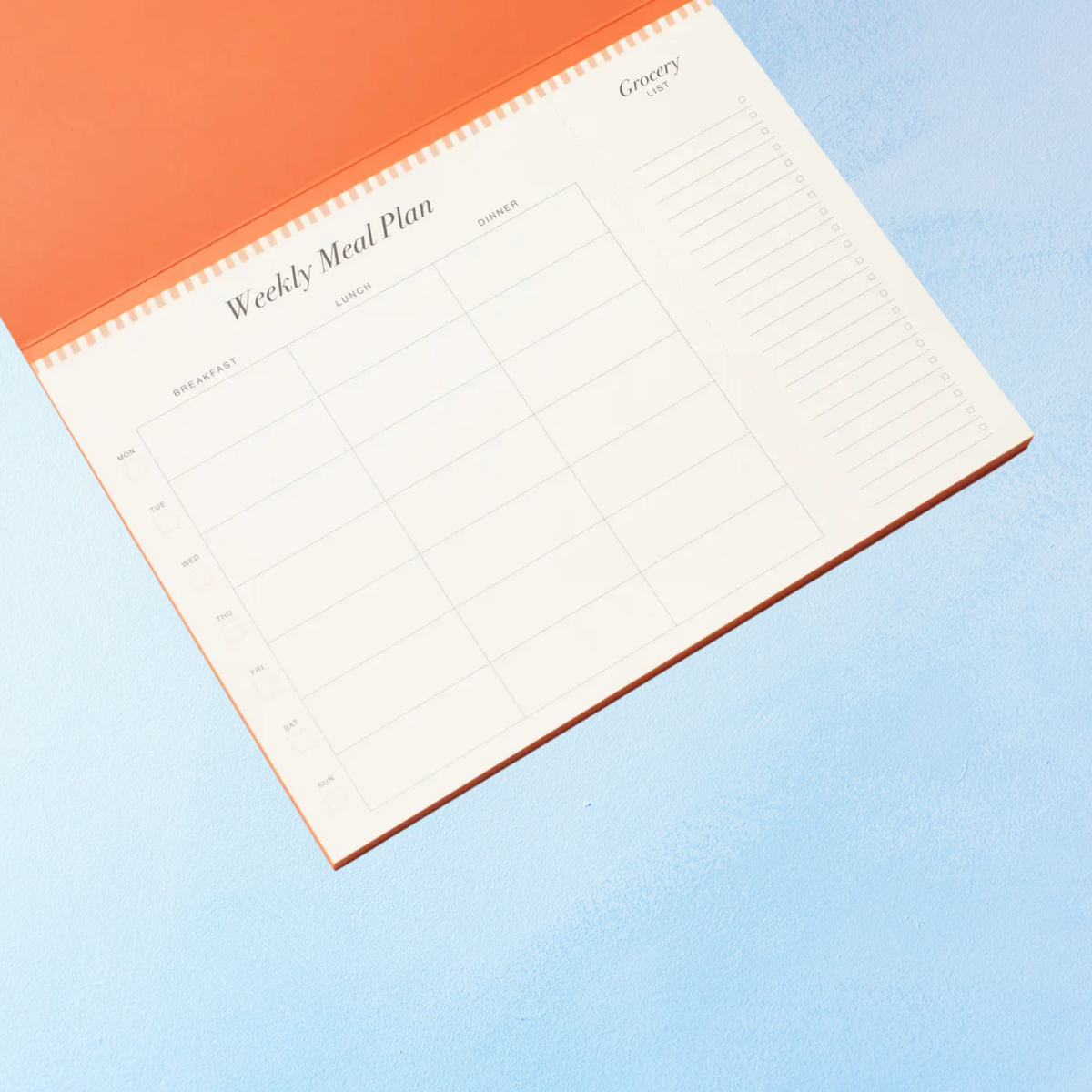Contains 60 weekly pages with tear-off grocery lists (Monday-Sunday)