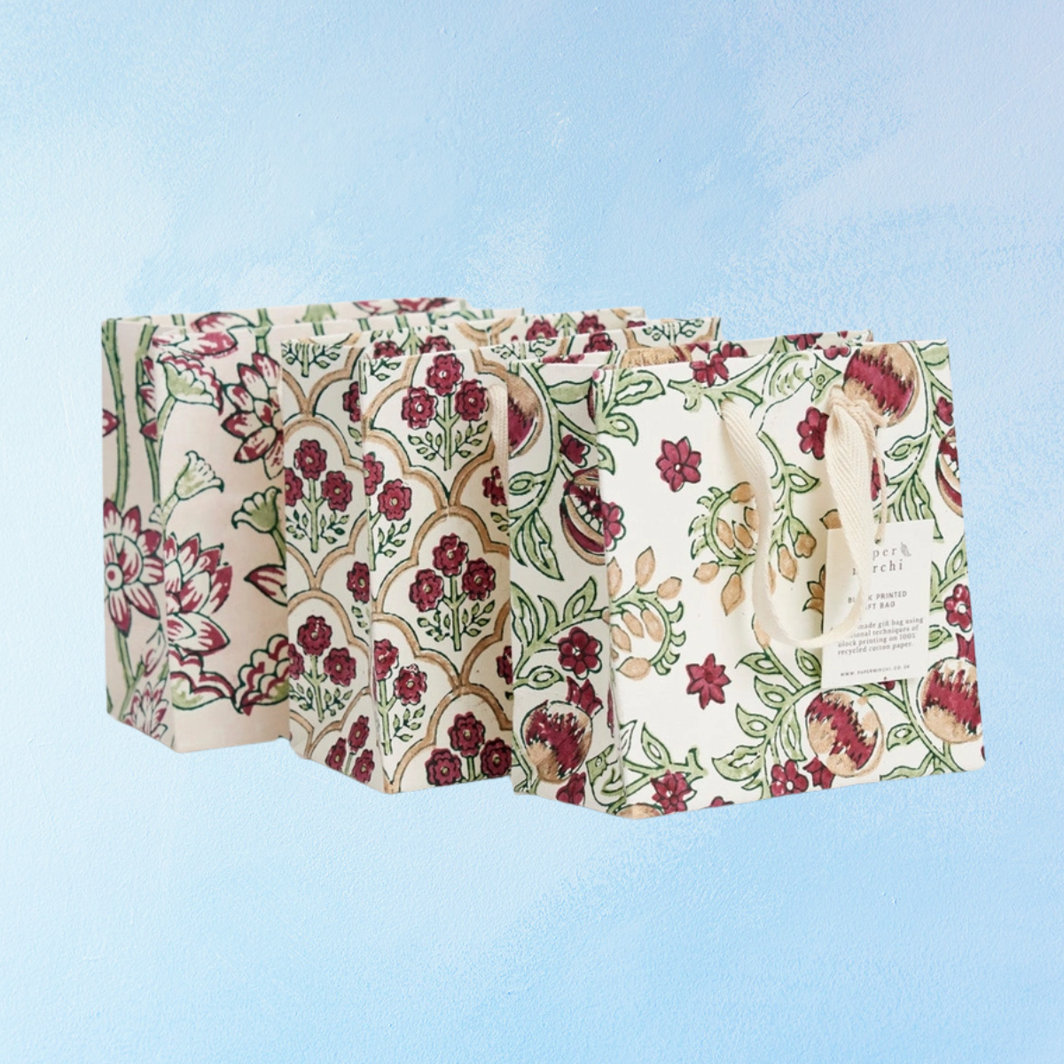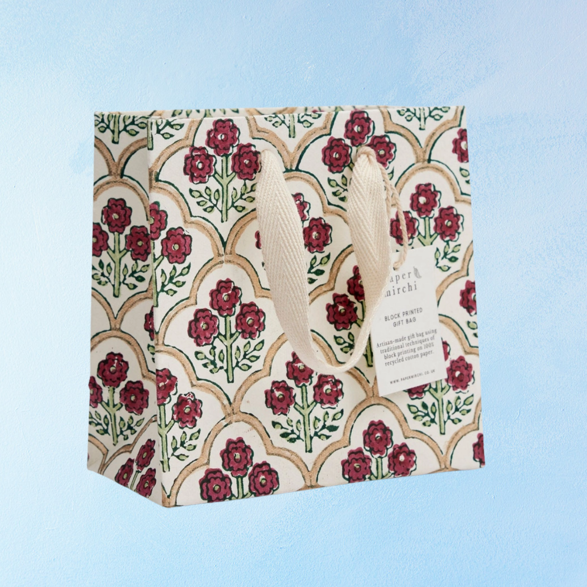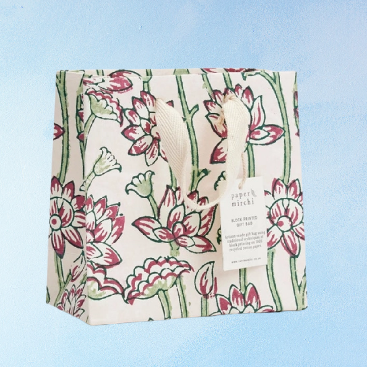 So you've found the perfect gift, now you just need to wrap it! The hand block printed gift bags are made from high quality, recycled paper material (so you can feel good about adding to your stash). Complete with cotton rope handles for easy carry. Go on, they deserve it.