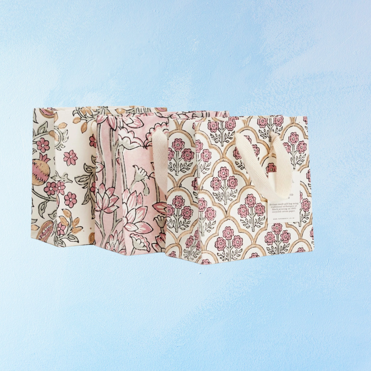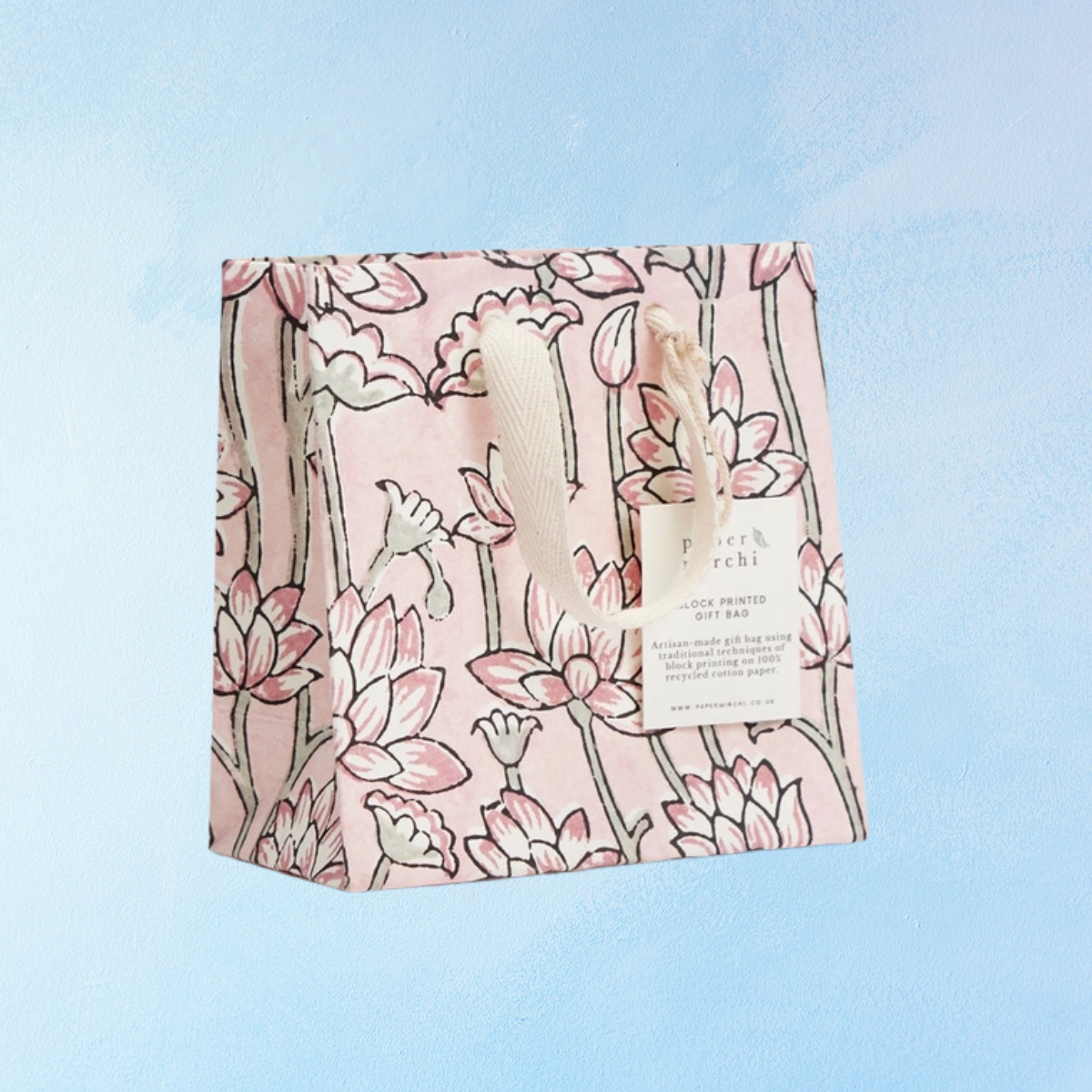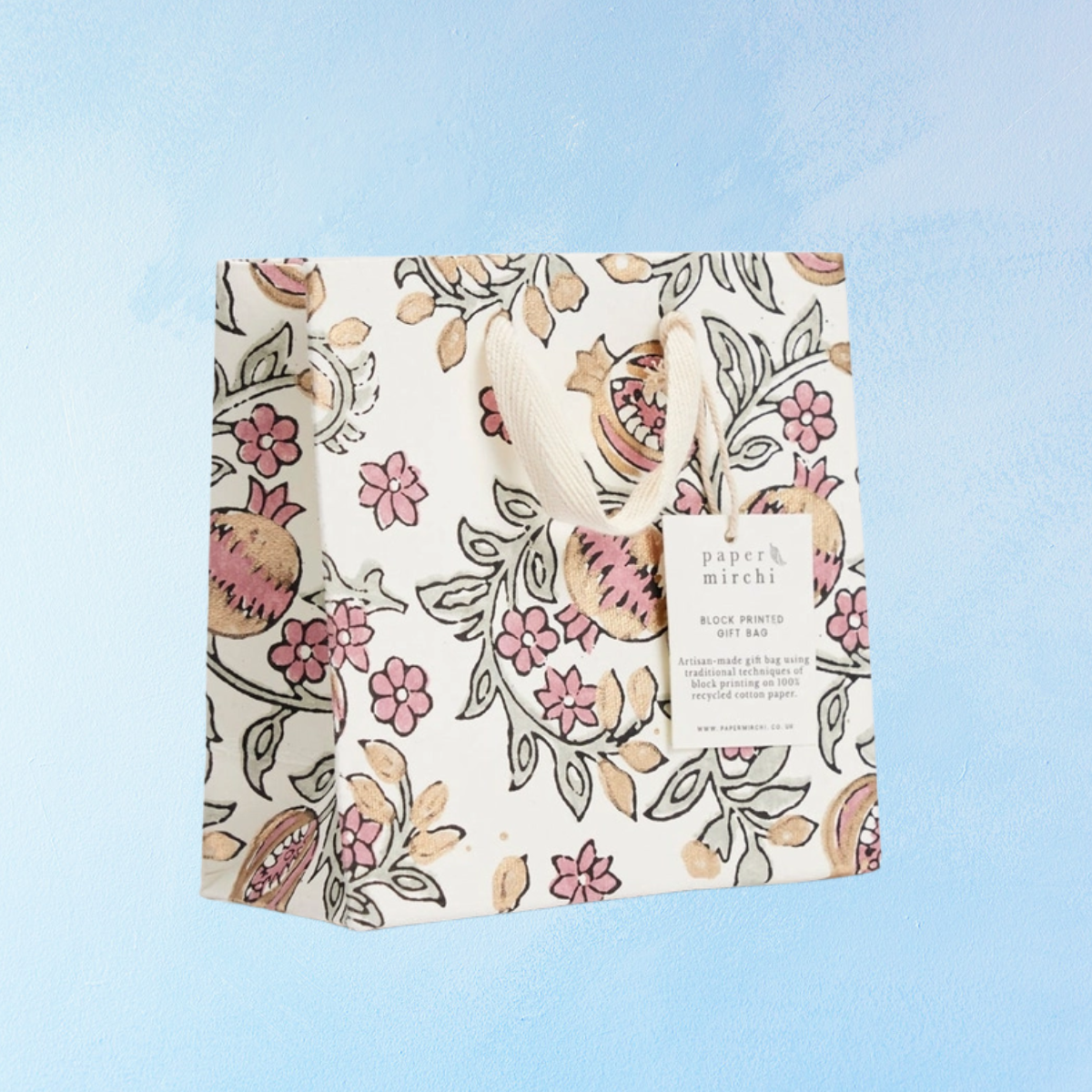 So you've found the perfect gift, now you just need to wrap it! The hand block printed gift bags are made from high quality, recycled paper material (so you can feel good about adding to your stash). Complete with cotton rope handles for easy carry. Go on, they deserve it.
