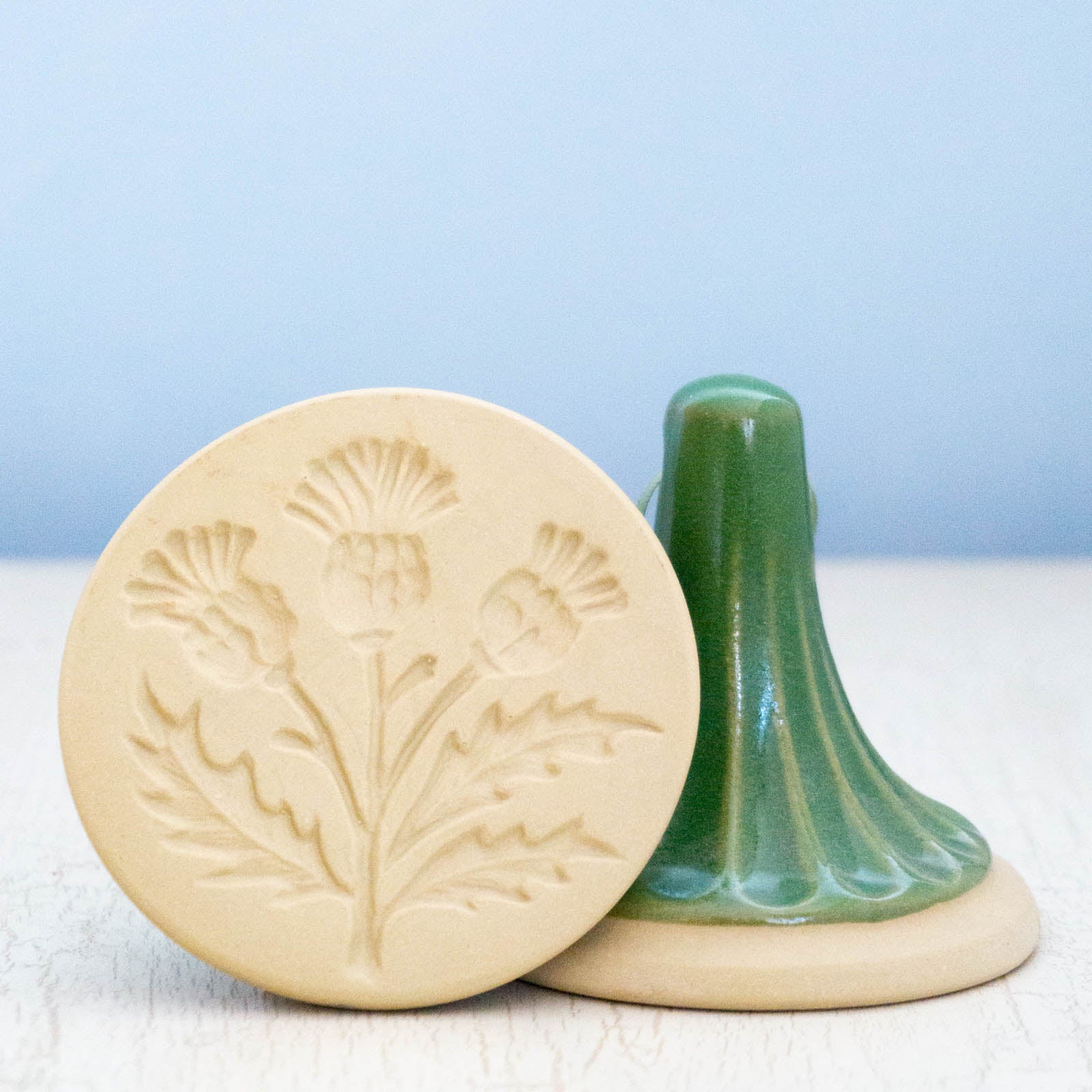 The baker inside your heart is jumping for joy right now! This cookie stamp is handmade from stoneware pottery in Bedford Virginia. Stamp features Celtic thistle design to stamp into any cookies your heart desires.