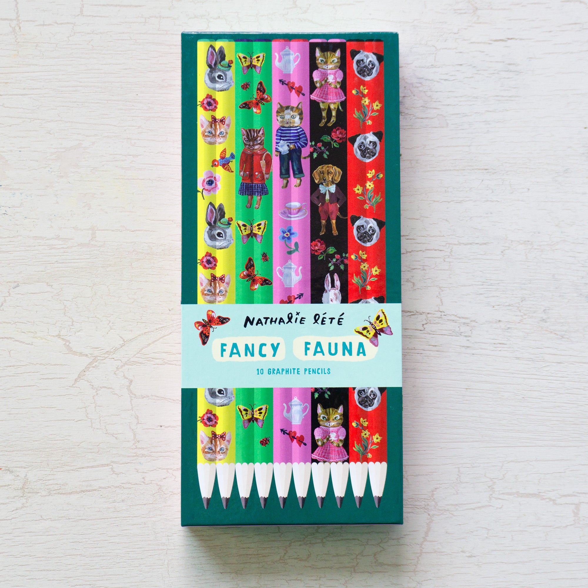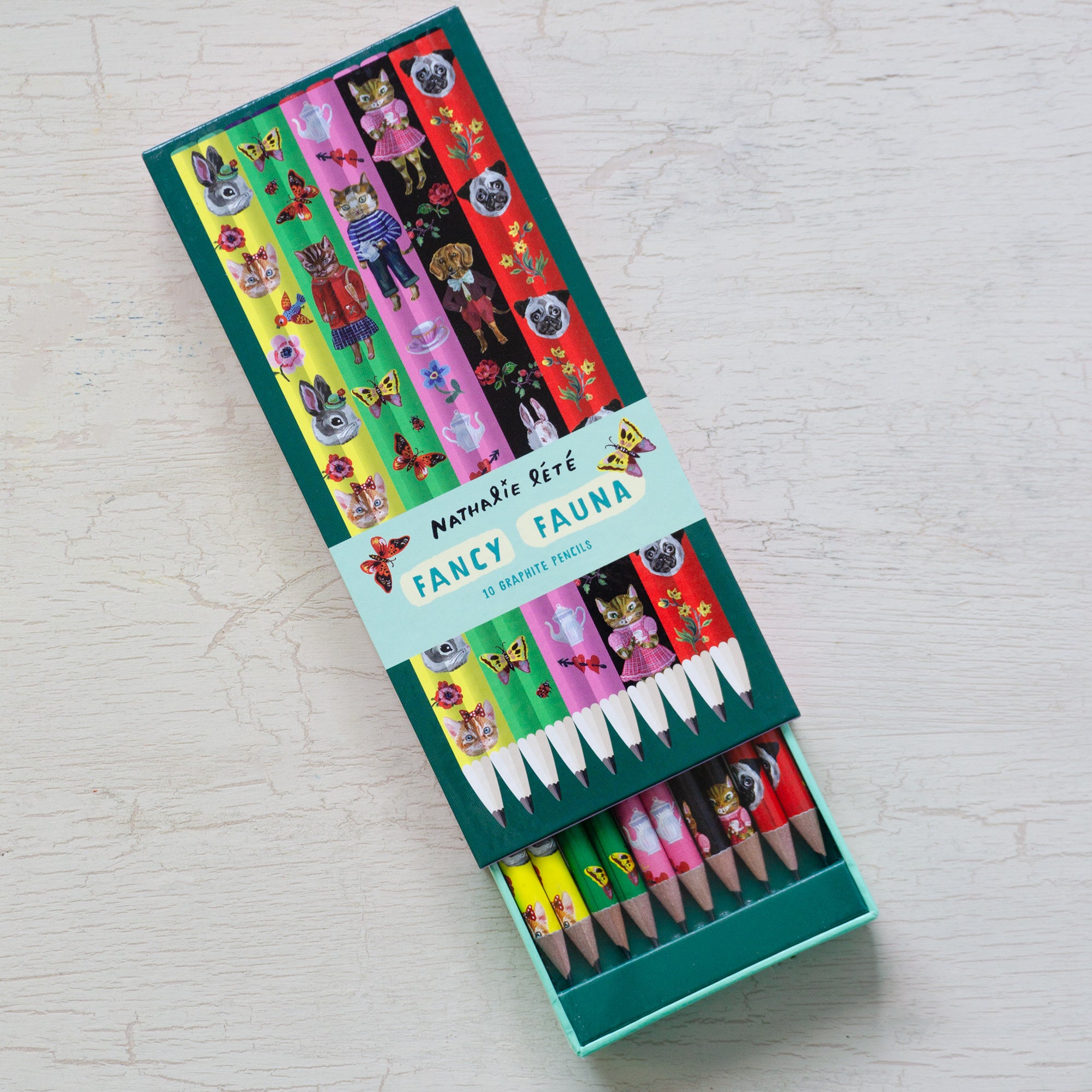 Spark your creativity with these charming graphite pencils from French artist Nathalie Lété. Featuring cute cats, dapper dogs, ritzy rabbits, and fancy florals, these 10 graphite pencils will inspire writers, artists, and creatives alike.