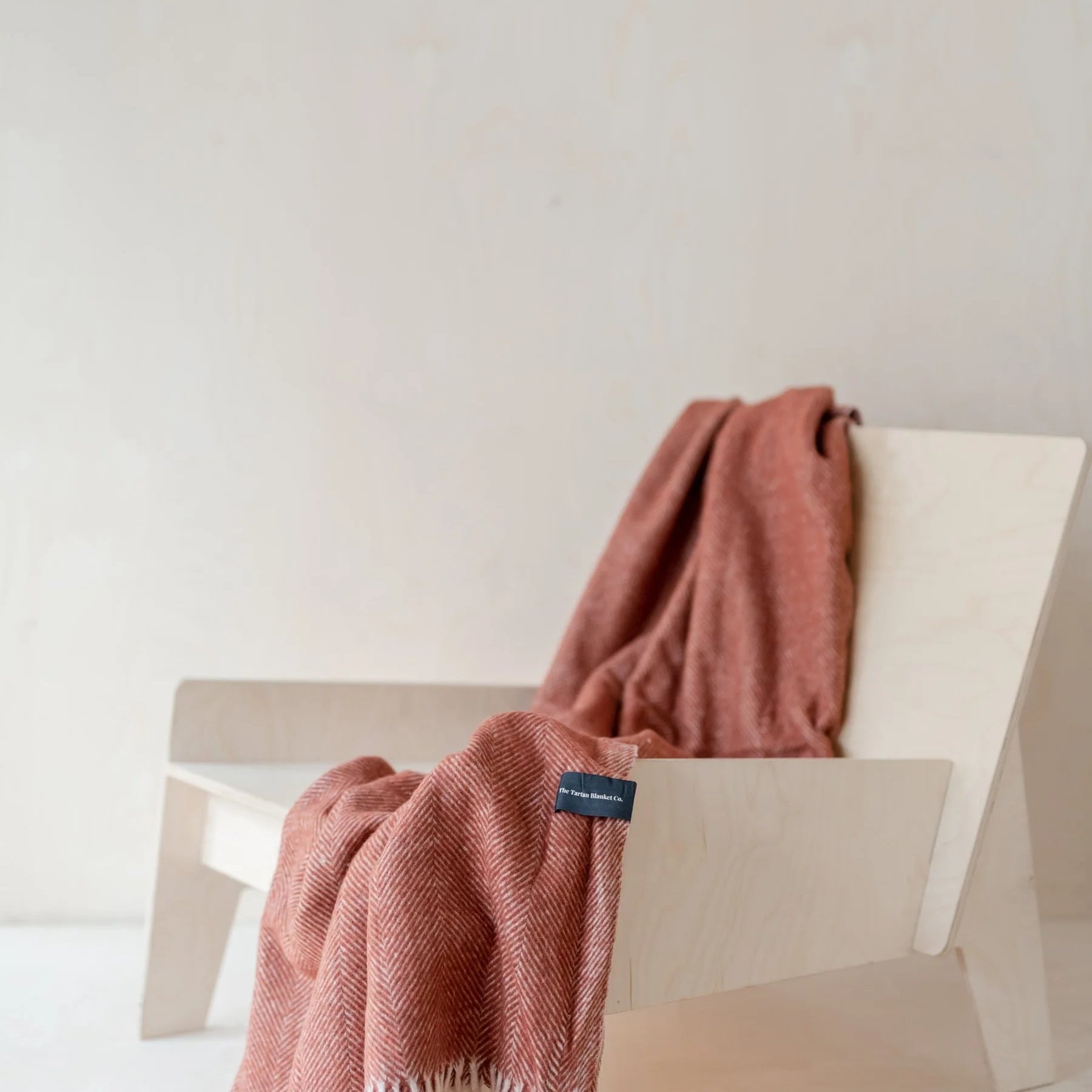 A blanket made from re-spun recycled wool. Beautiful and sustainable! This blanket is cut to a smaller size for wrapping around shoulders, draping over knees or dressing furniture.