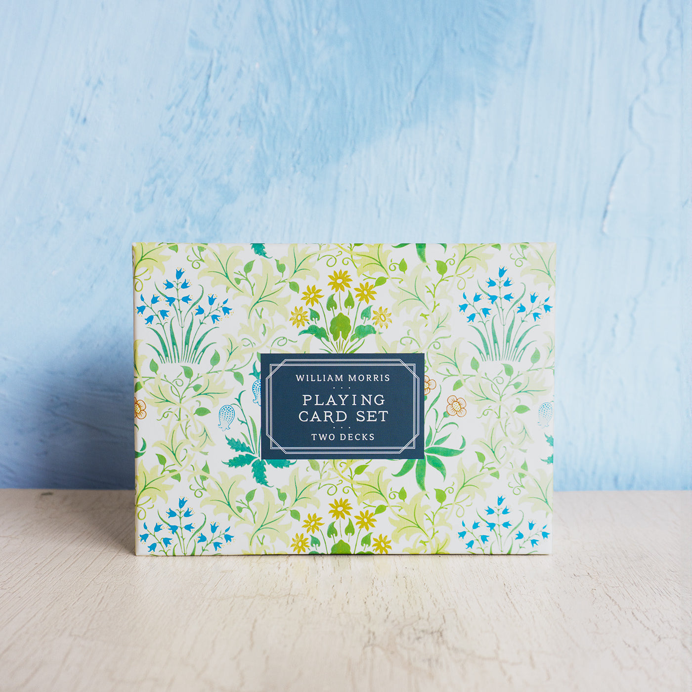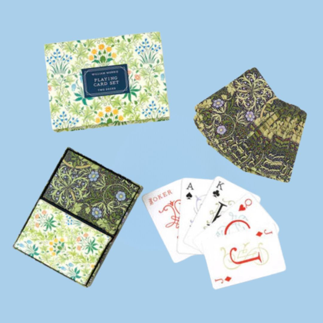The William Morris Playing Card Set features two standard size decks of playing cards in the famous Celandine and Seaweed designs. Each deck is in its own colorful box for safe keeping and the 2 sets are packaged in a keepsake drawer box.