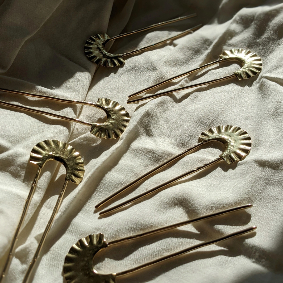 The Sunna style comes in gold and features a sun inspired detail. Suitable for buns less than 3" in diameter.