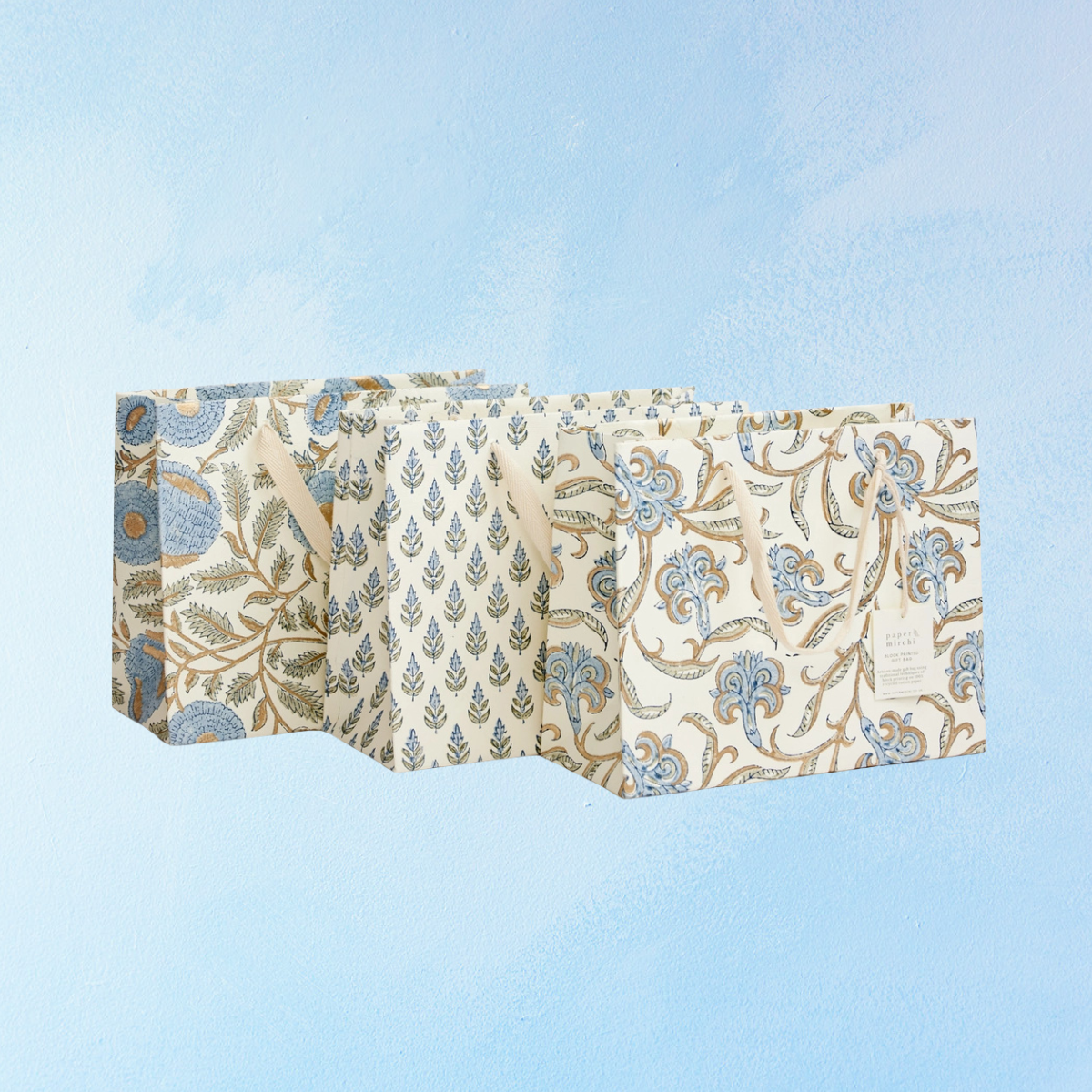 So you've found the perfect gift, now you just need to wrap it! The hand block printed gift bags are made from high quality, recycled paper material (so you can feel good about adding to your stash). Complete with cotton rope handles for easy carry. Go on, they deserve it.